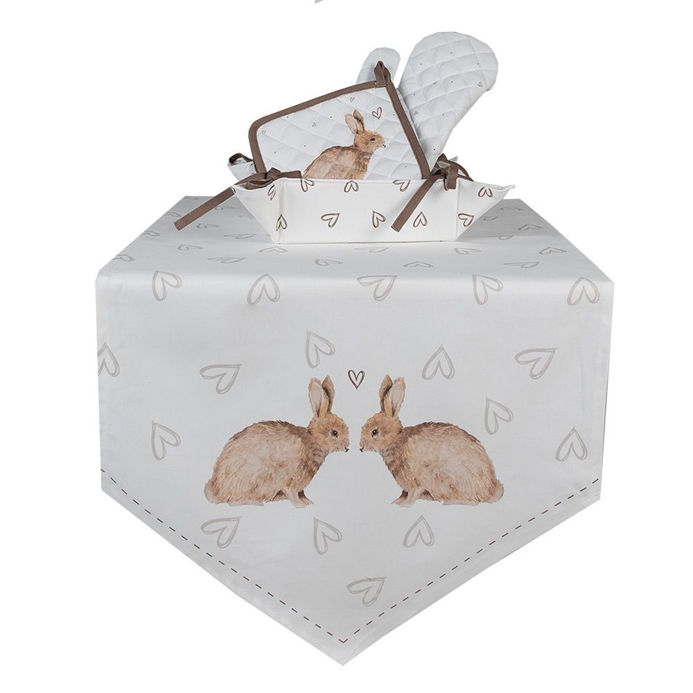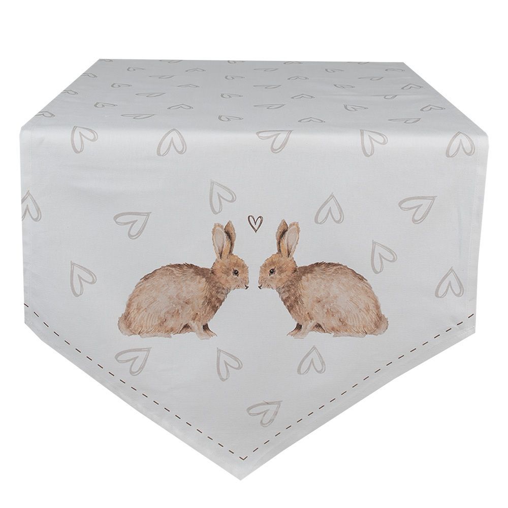 Clayre & Eef Clayre & Eef Tischläufer 50x160 cm Weiß Braun Baumwolle Kaninchen (Gr. 50x160 cm)