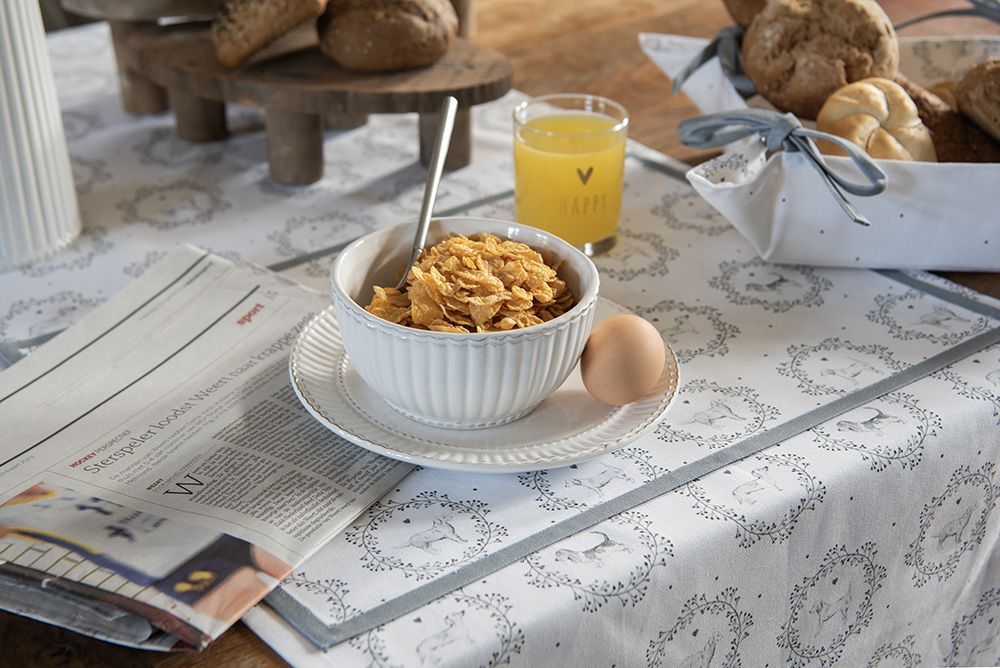 Clayre & Eef Clayre & Eef Tischläufer 50x160 cm Weiß Grau Baumwolle Hund (Gr. 50x160 cm)