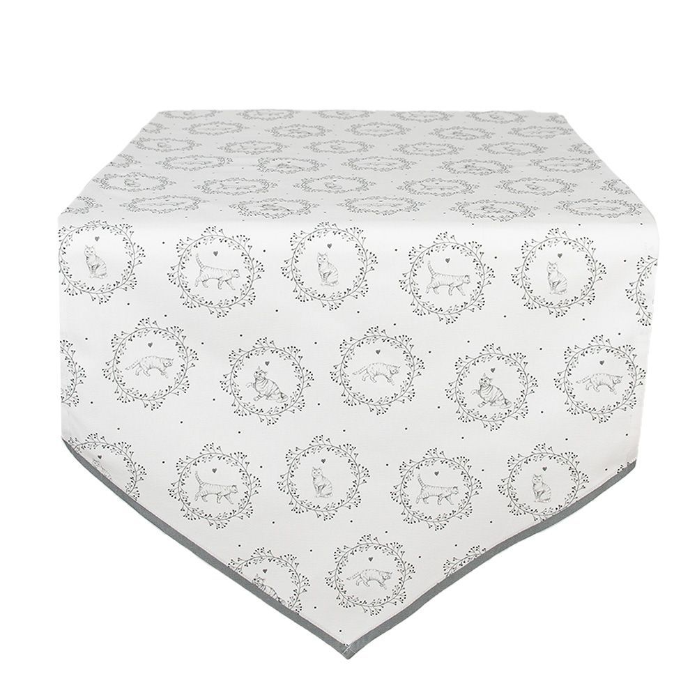 Clayre & Eef Clayre & Eef Tischläufer 50x160 cm Weiß Grau Baumwolle Katze (Gr. 50x160 cm)