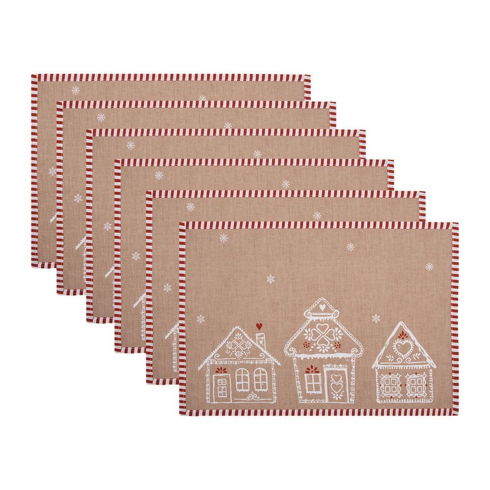 Clayre & Eef Clayre & Eef Tischsets 6er Set 48x33 cm Braun Baumwolle Lebkuchenhaus