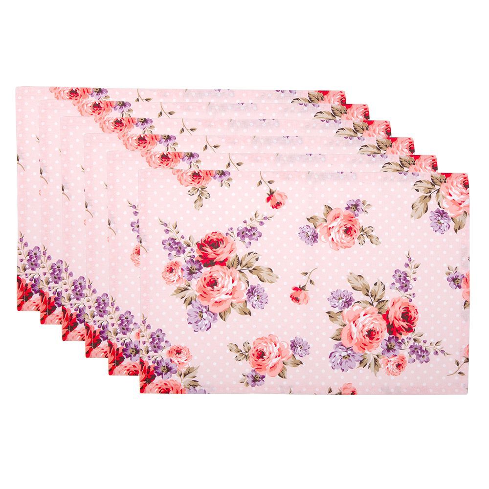 Clayre & Eef Clayre & Eef Tischsets 6er Set 48x33 cm Rosa Violett Baumwolle Rosen