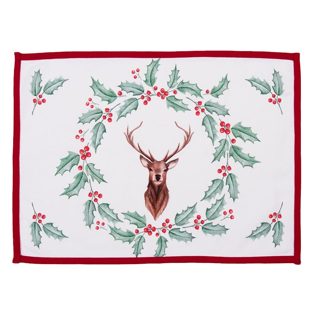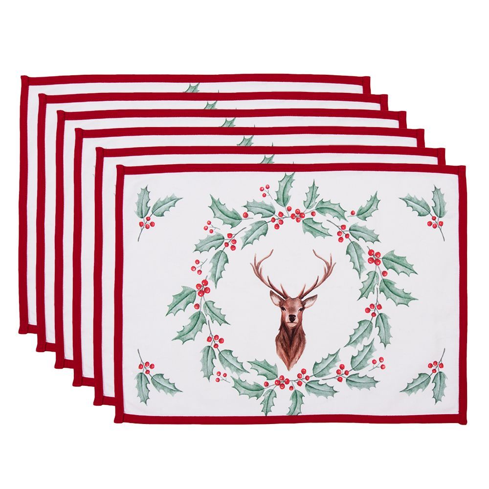 Clayre & Eef Clayre & Eef Tischsets 6er Set 48x33 cm Weiß Rot Baumwolle Hirsch und