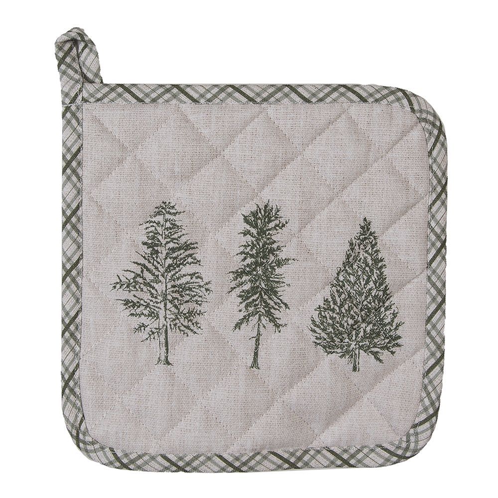 Clayre & Eef Clayre & Eef Topflappen 20x20 cm Beige Grün Baumwolle Tannenbäume (Gr. 20x20 cm)