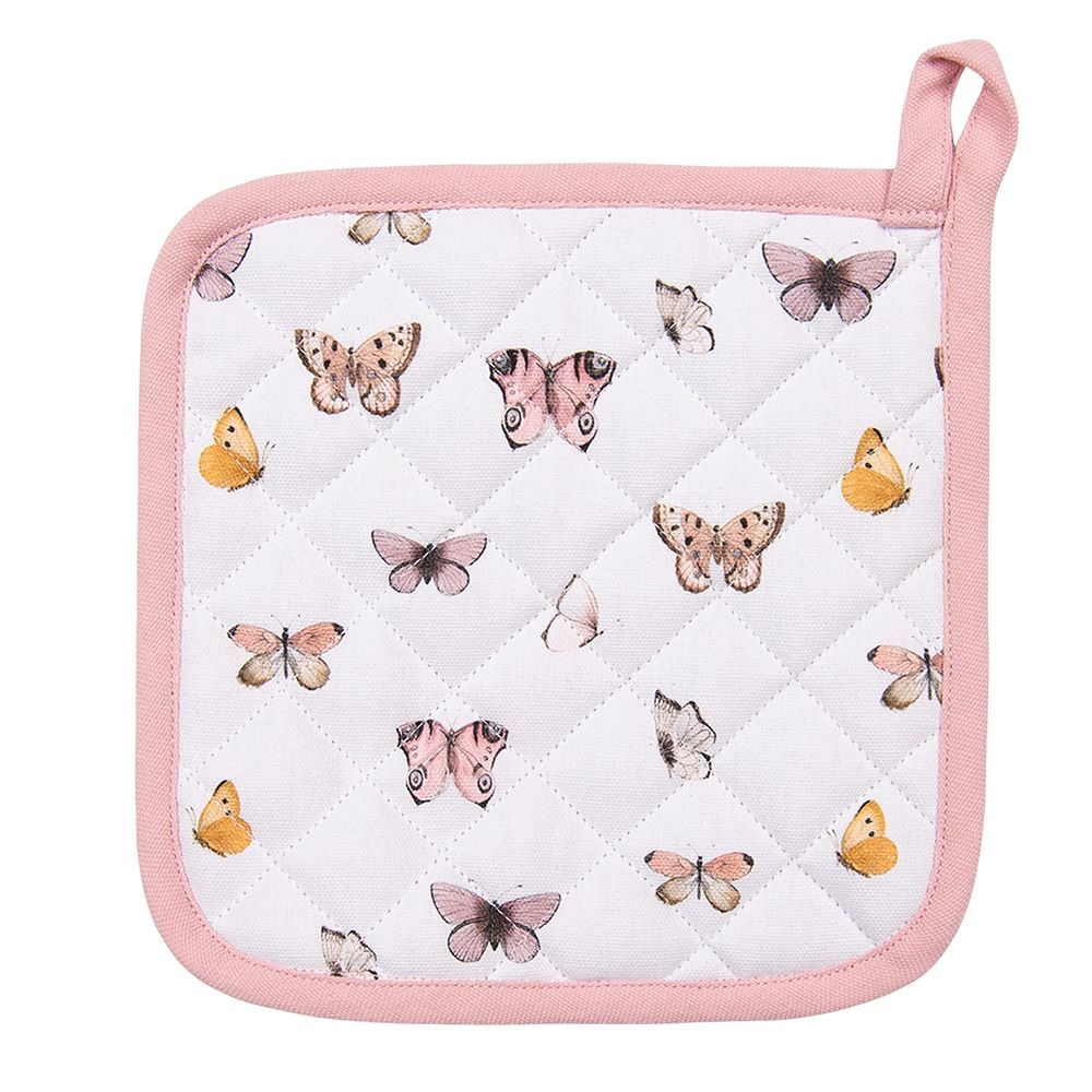 Clayre & Eef Clayre & Eef Topflappen 20x20 cm Beige Rosa Baumwolle Schmetterlinge (Gr. 20x20 cm)