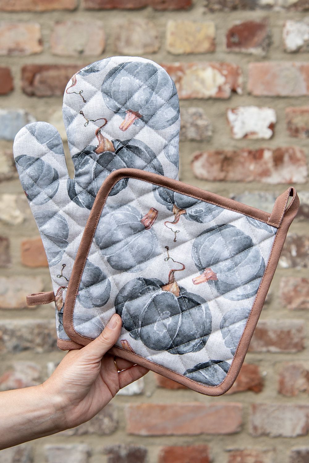 Clayre & Eef Clayre & Eef Topflappen 20x20 cm Grau Baumwolle Kürbis (Gr. 20x20 cm)