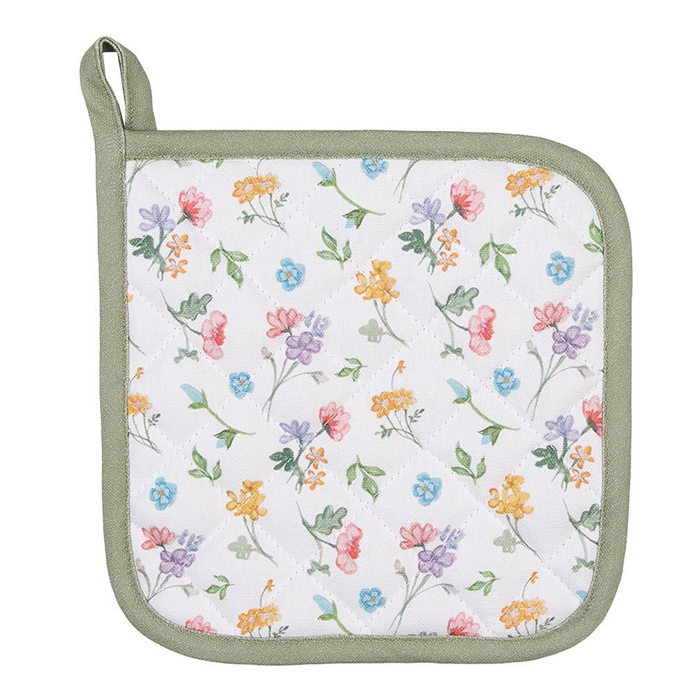 Clayre & Eef Clayre & Eef Topflappen 20x20 cm Weiß Grün Baumwolle Blumen (Gr. 20x20 cm)