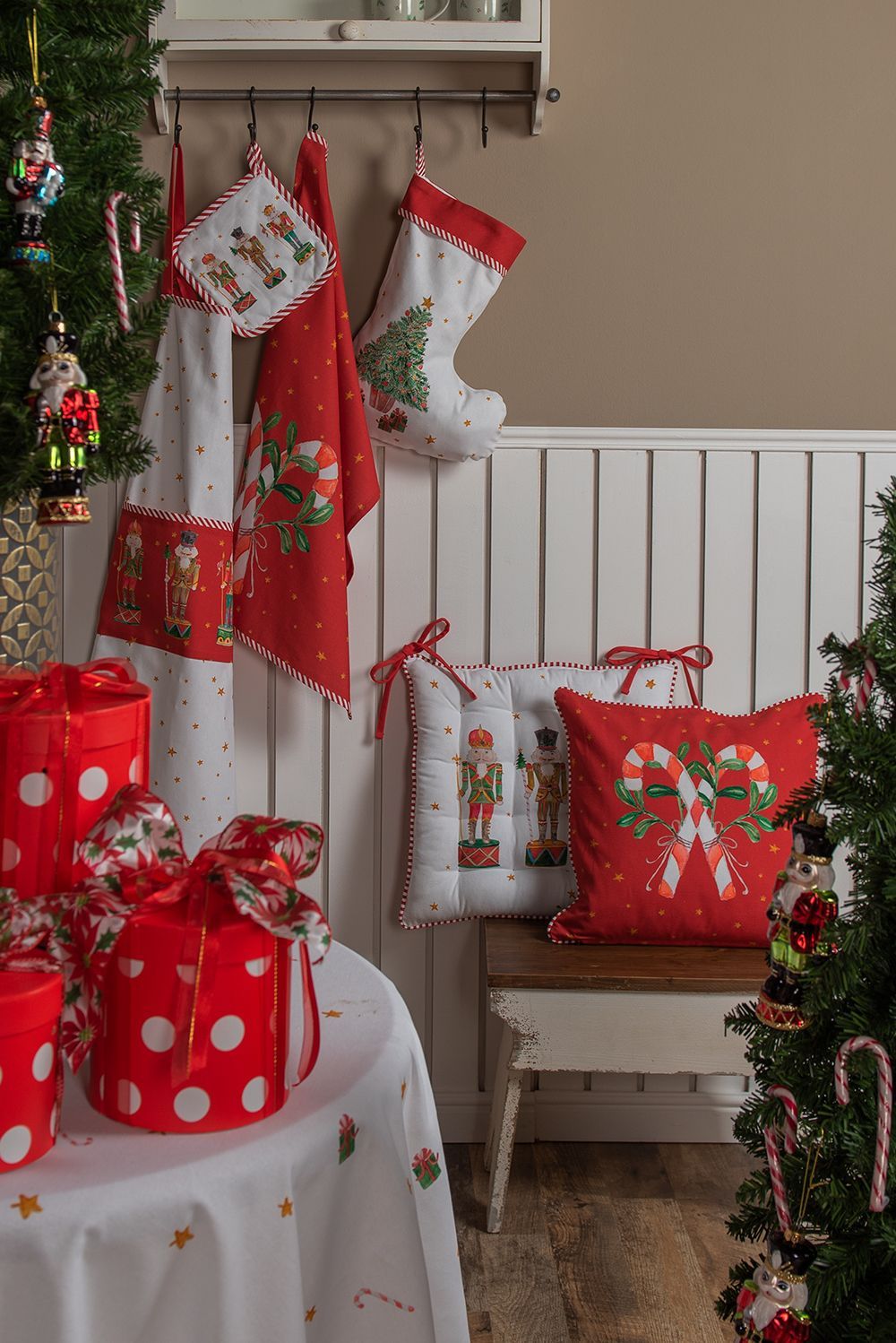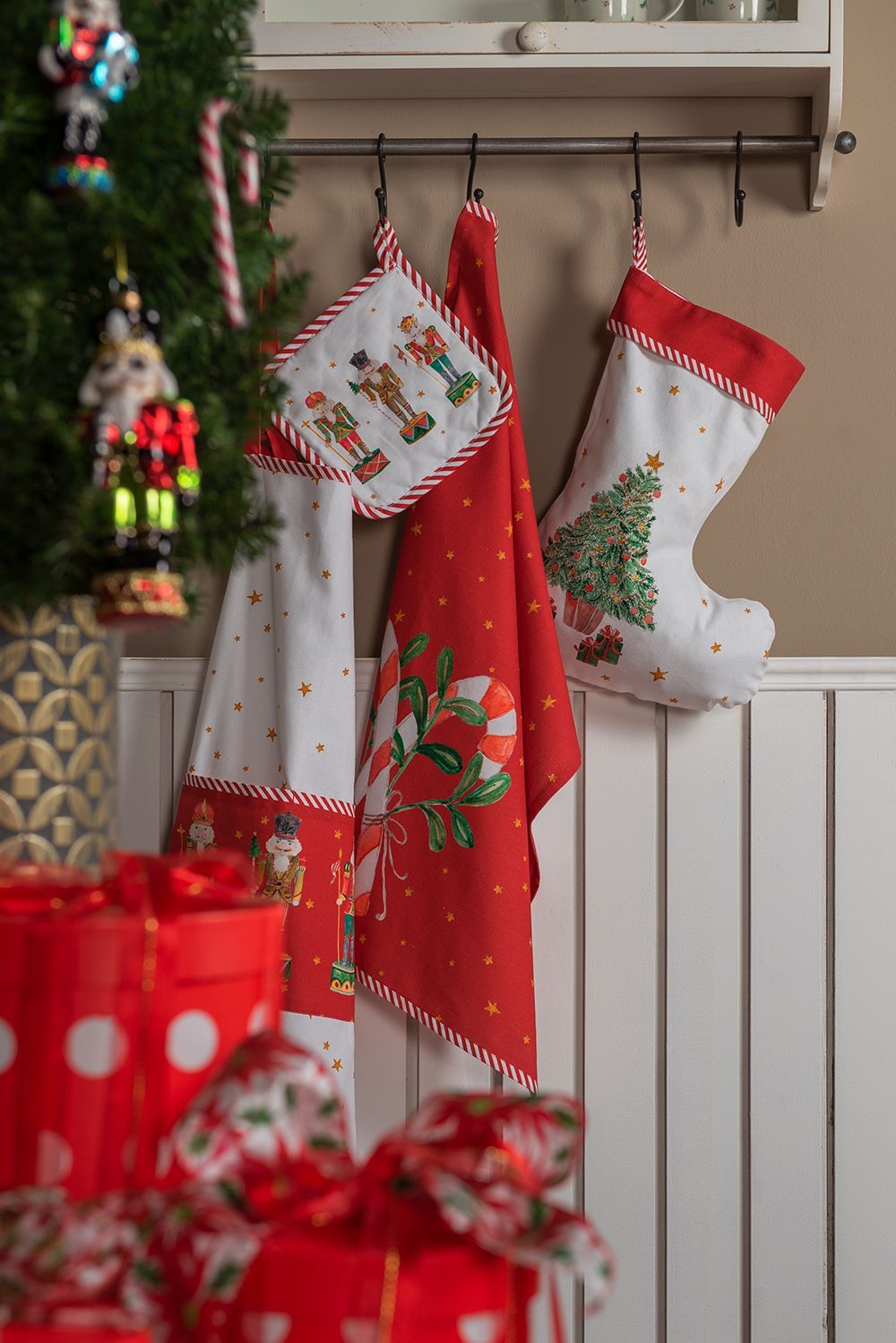 Clayre & Eef Clayre & Eef Topflappen 20x20 cm Weiß Rot Baumwolle Nussknacker (Gr. 20x20 cm)