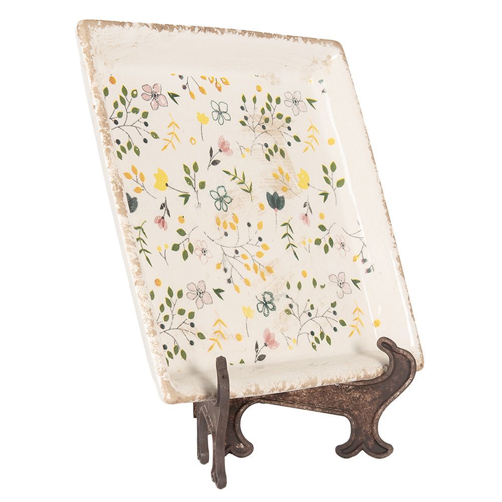Clayre & Eef Clayre & Eef Unterteller 22x22x3 cm Beige Keramik Blumen (Gr. 22x22x3 cm)