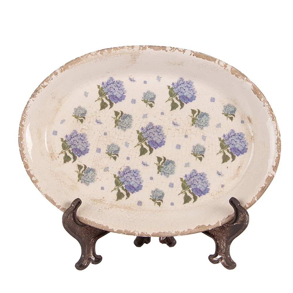 Clayre & Eef Clayre & Eef Unterteller 25x18x2 cm Beige Blau Keramik Blumen (Gr. 25x18x2 cm)