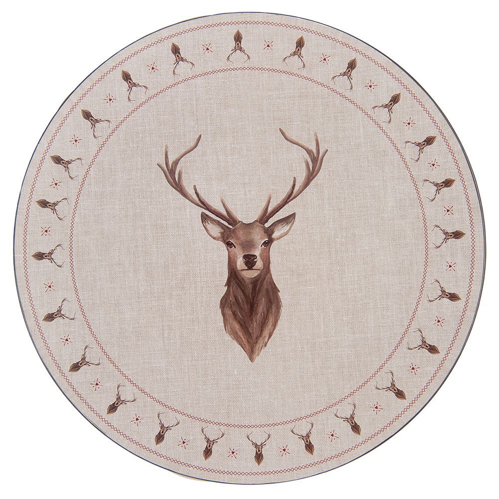 Clayre & Eef Clayre & Eef Unterteller Ø 33 cm Beige Braun Kunststoff Hirsch (Gr. Ø 33x1 cm)