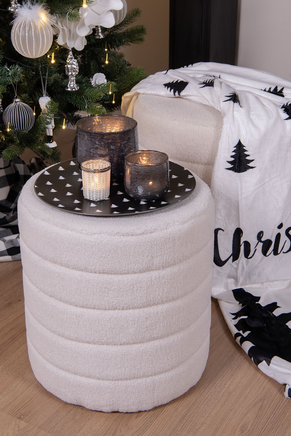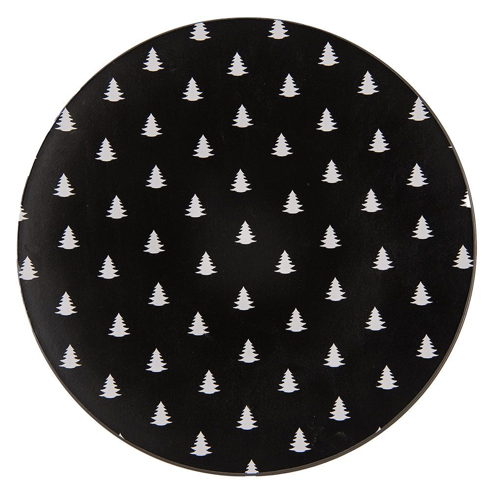Clayre & Eef Clayre & Eef Unterteller Ø 33 cm Schwarz Weiß Kunststoff Weihnachtsbäume