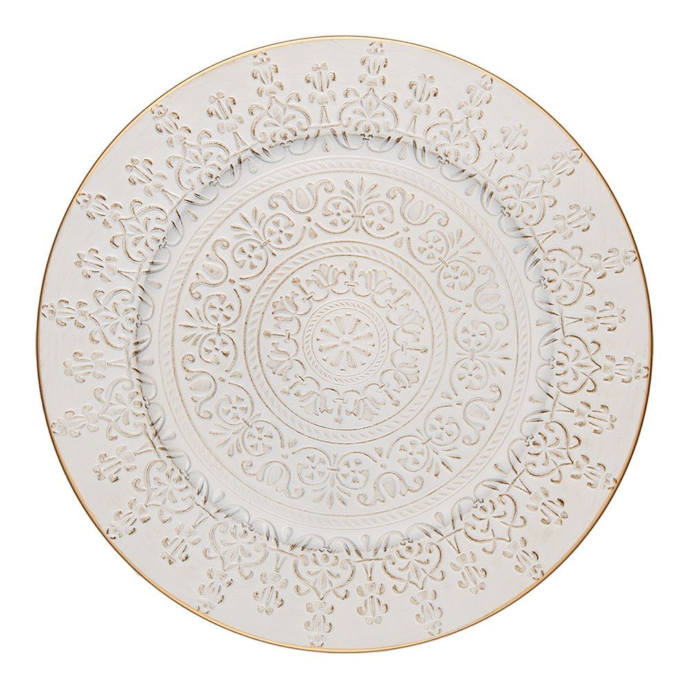 Clayre & Eef Clayre & Eef Unterteller Ø 33 cm Weiß Goldfarbig Kunststoff (Gr. Ø 33x1 cm)