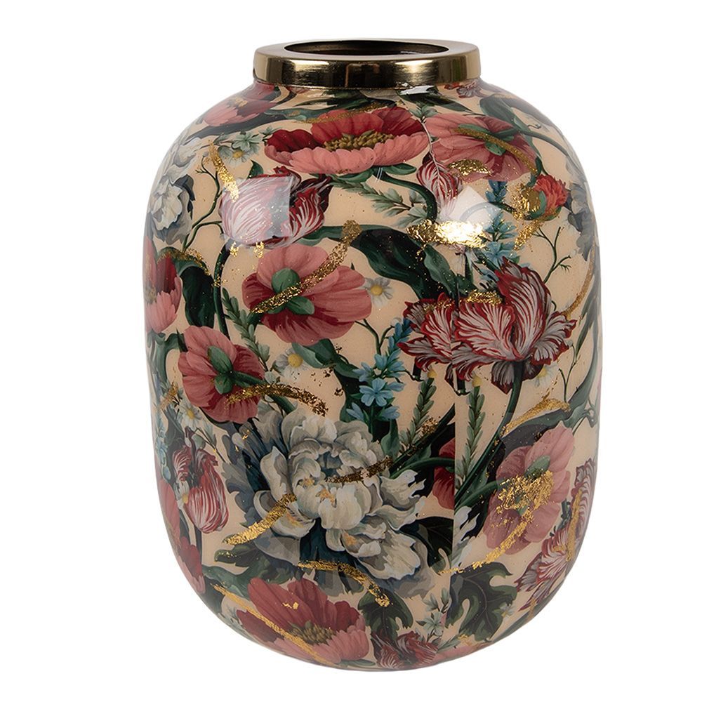• Clayre & Eef Vase Ø 17x30 cm Beige Rosa Keramik Blumen (Gr. Ø 17x30 cm)
