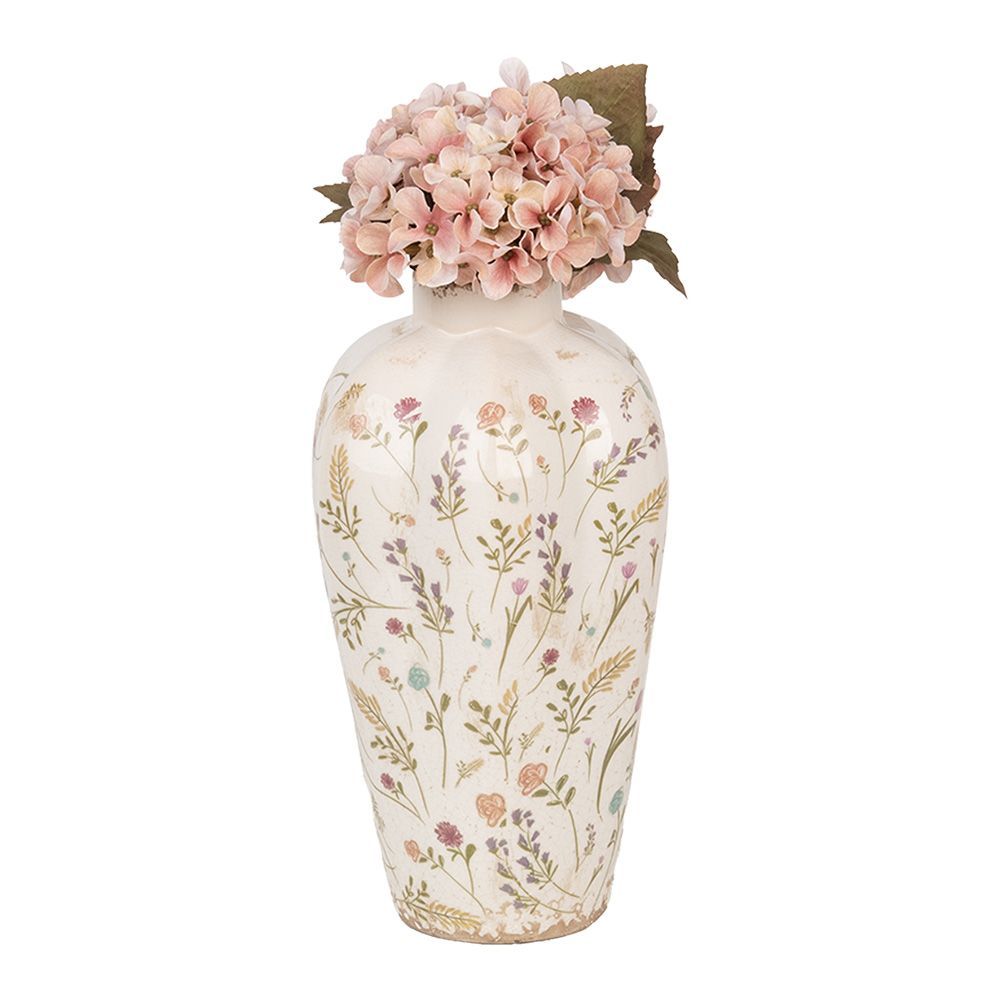 Clayre & Eef Clayre & Eef Vase Ø 17x30 cm Beige Rosa Keramik Blumen (Gr. Ø 17x30 cm)