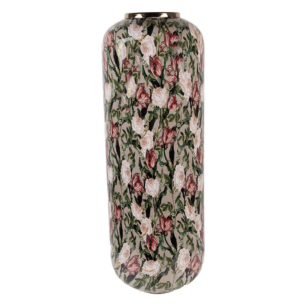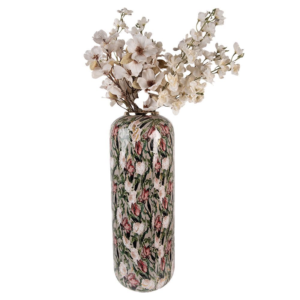• Clayre & Eef Vase Ø 24x40 cm Beige Grau Keramik Blumen (Gr. Ø 24x40 cm)