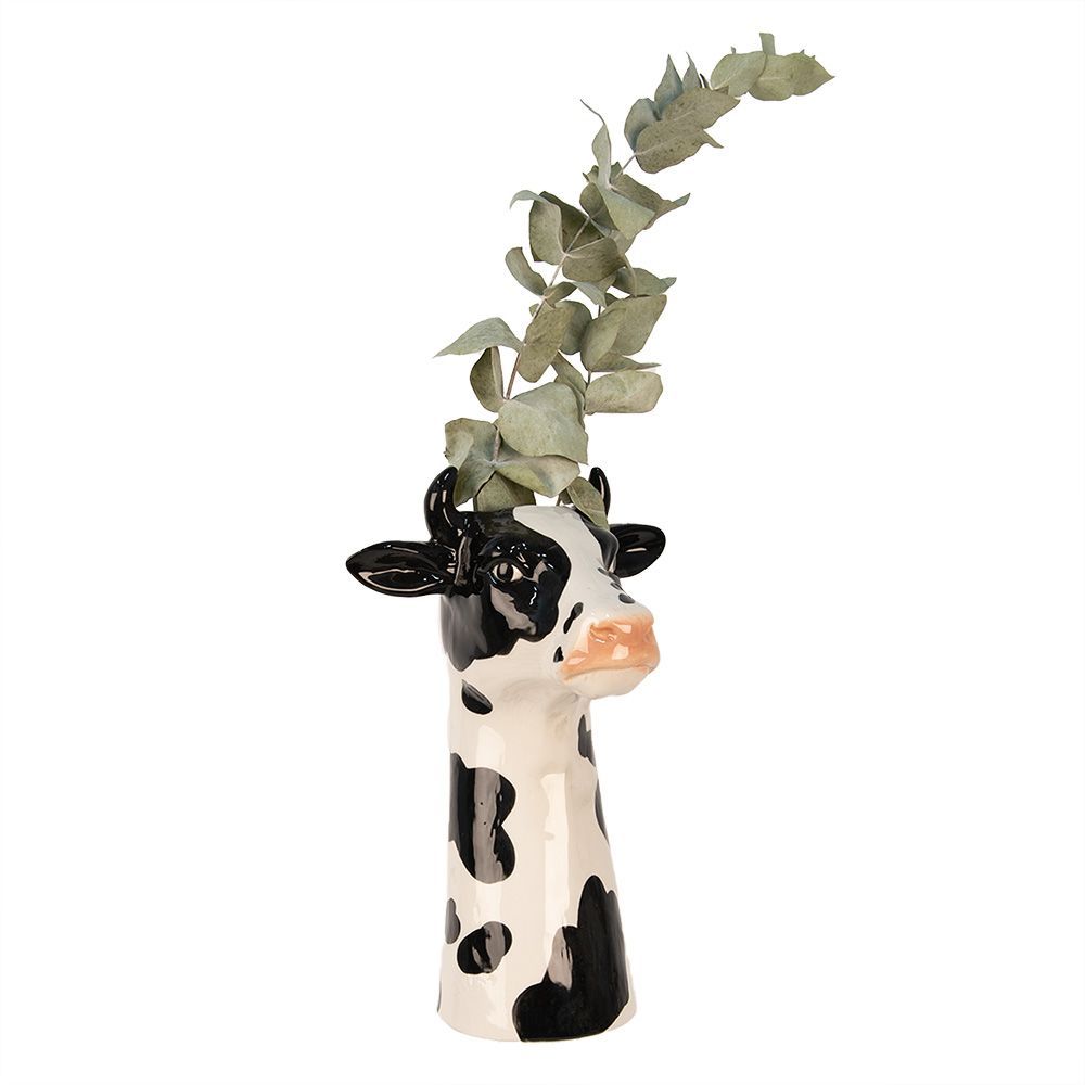 Clayre & Eef Clayre & Eef Vase Kuh 20x19x32 cm Weiß Schwarz Keramik (Gr. 20x19x32 cm)