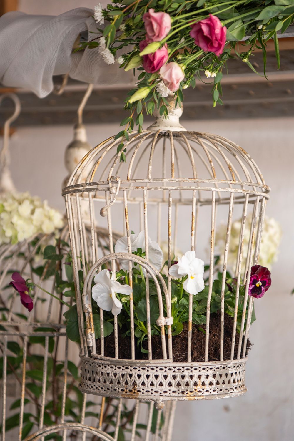 Clayre & Eef Clayre & Eef Vogelk?fig Dekoration 3er Set Weiß Eisen