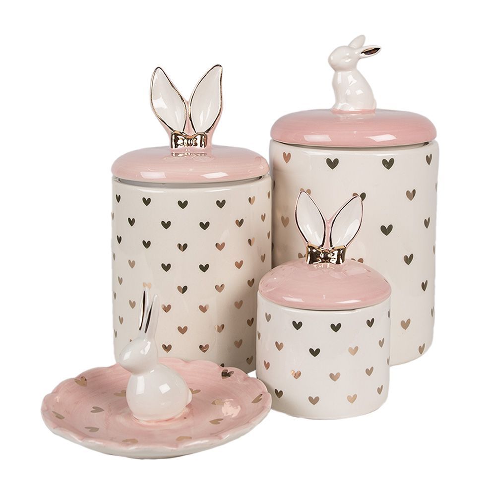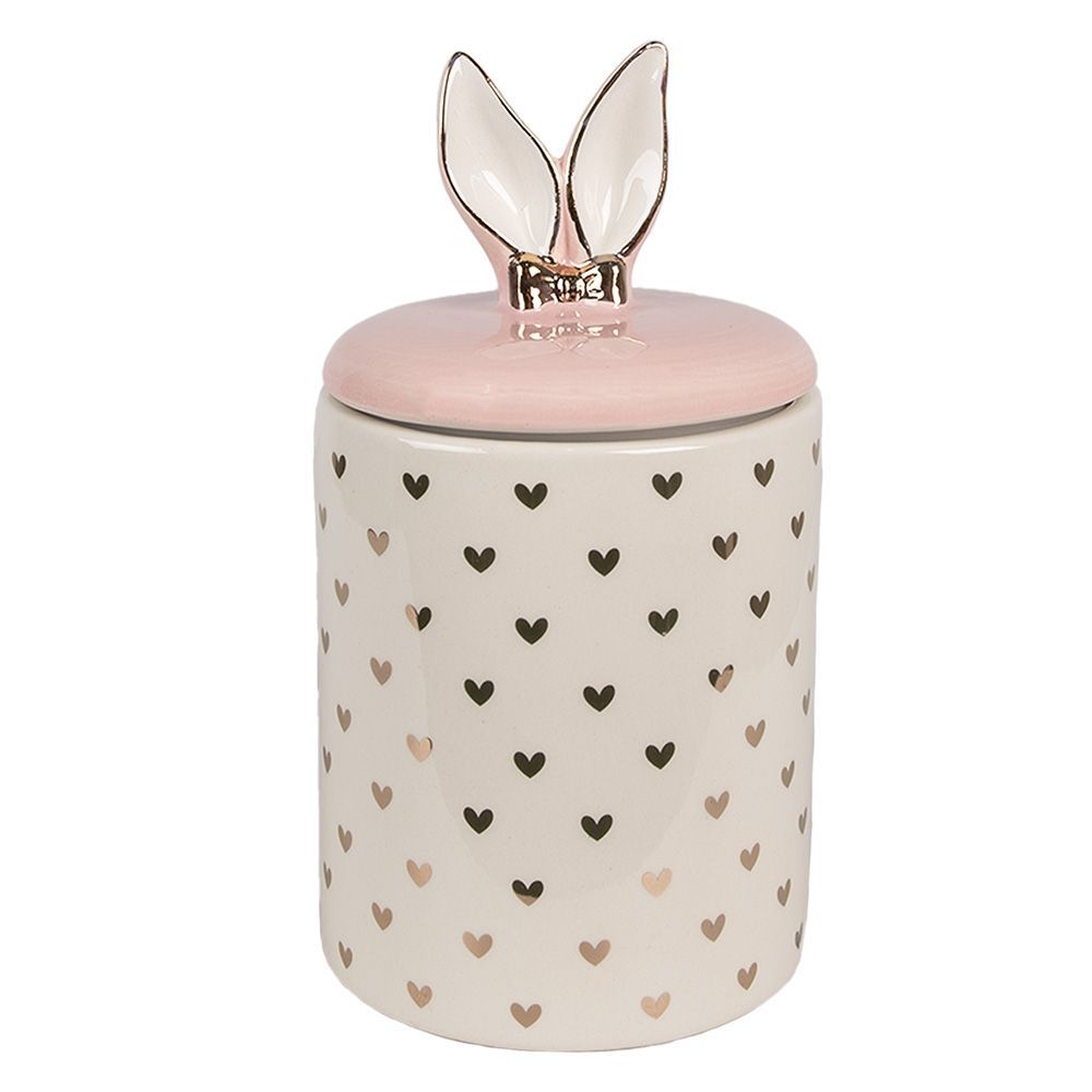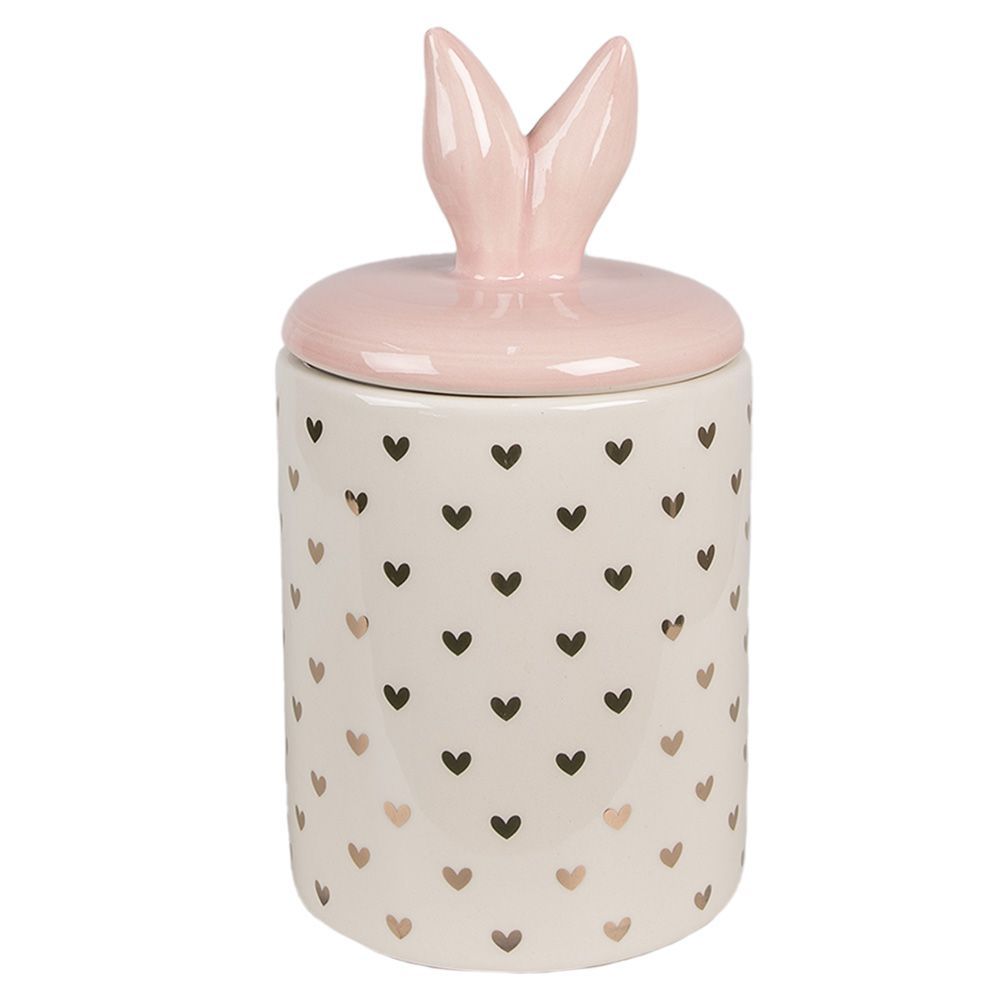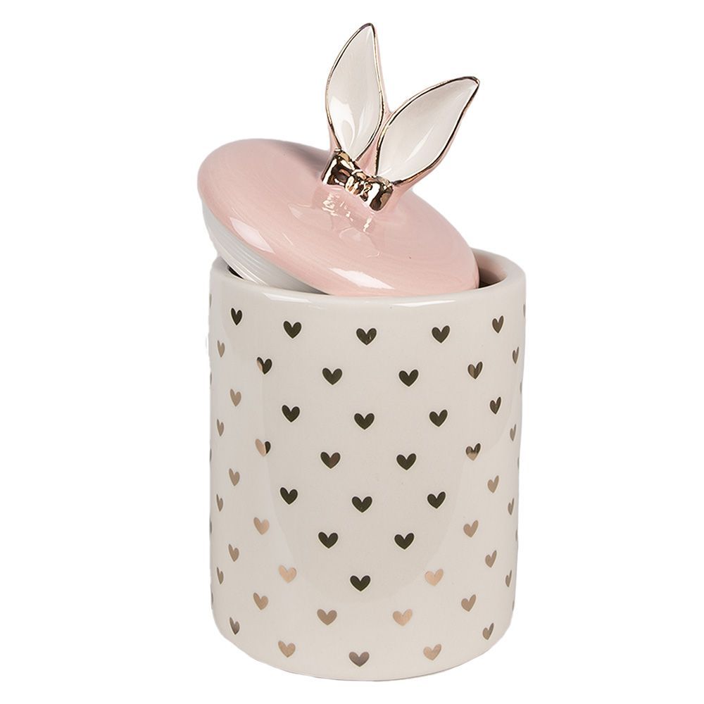Clayre & Eef Clayre & Eef Vorratsglas Ø 11x20 cm Weiß Rosa Keramik Herzen (Gr. Ø 11x22 cm)