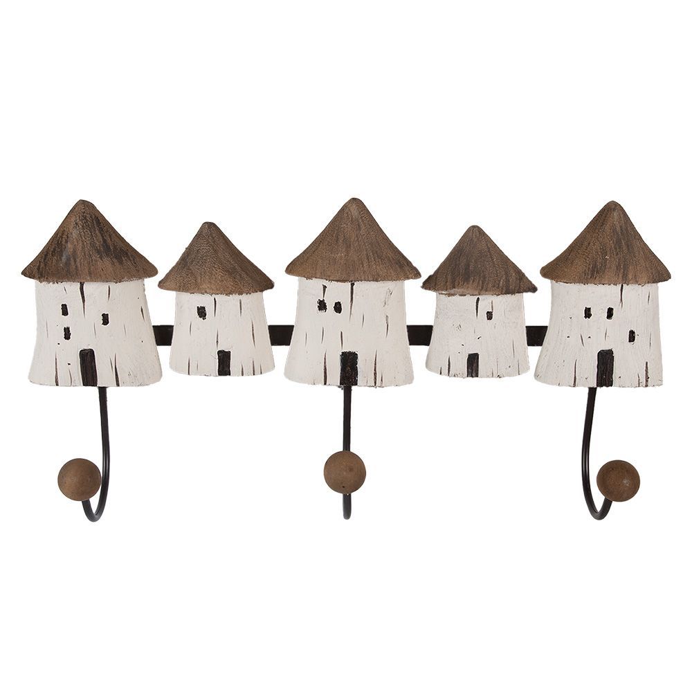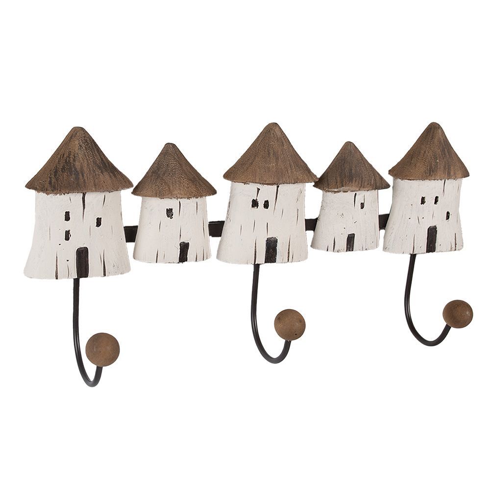 Clayre & Eef Clayre & Eef Wandgarderobe 38x8x19 cm Weiß Braun Holz Häuser (Gr. 38x8x19 cm)