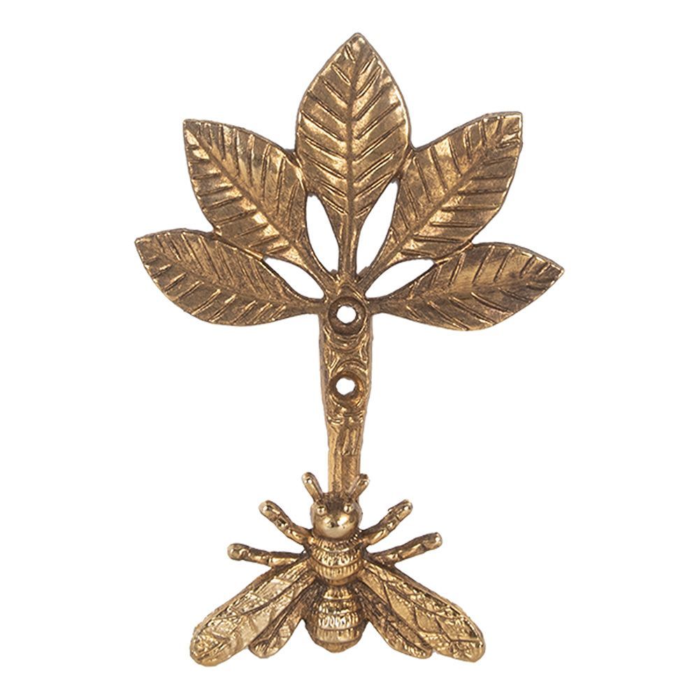 Clayre & Eef Clayre & Eef Wandhaken 10x6x14 cm Goldfarbig Metall Biene und Blumen (Gr. 10x6x14 cm)