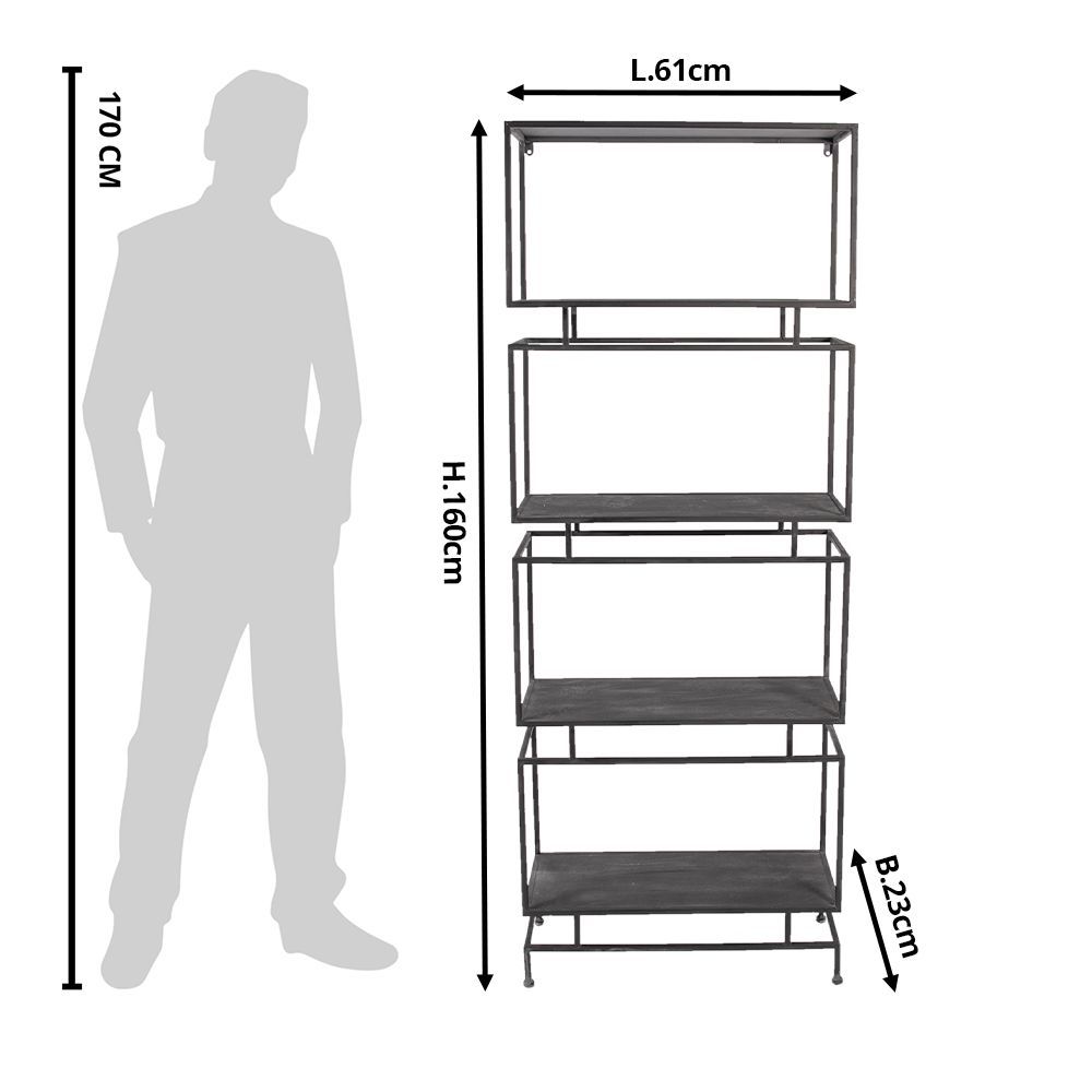 Clayre & Eef Clayre & Eef Wandregal 61x23x160 cm Schwarz Metall (Gr. 61x23x160 cm)