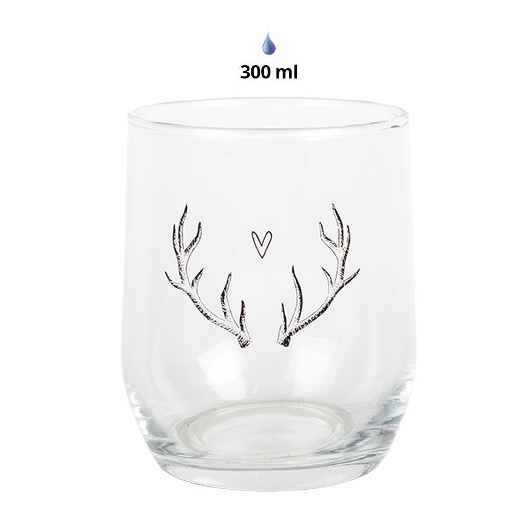 Clayre & Eef Clayre & Eef Wasserglas 300 ml Transparant Glas Geweih (Gr. Ø 8x9 cm / 300 ml)