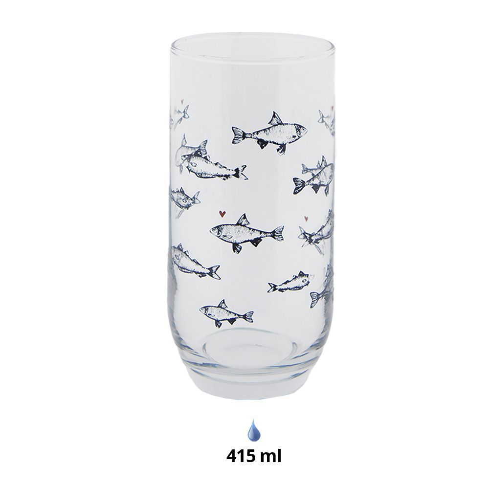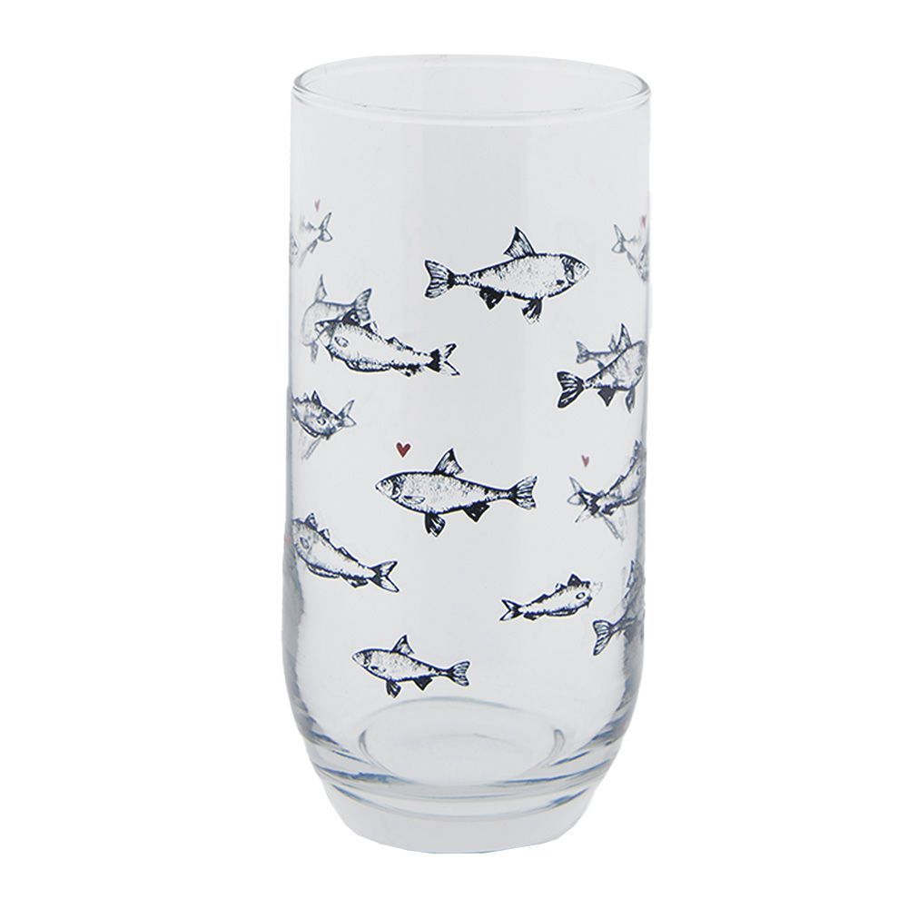 Clayre & Eef Clayre & Eef Wasserglas Ø 7x14 cm / 380 ml Transparant Glas Fische