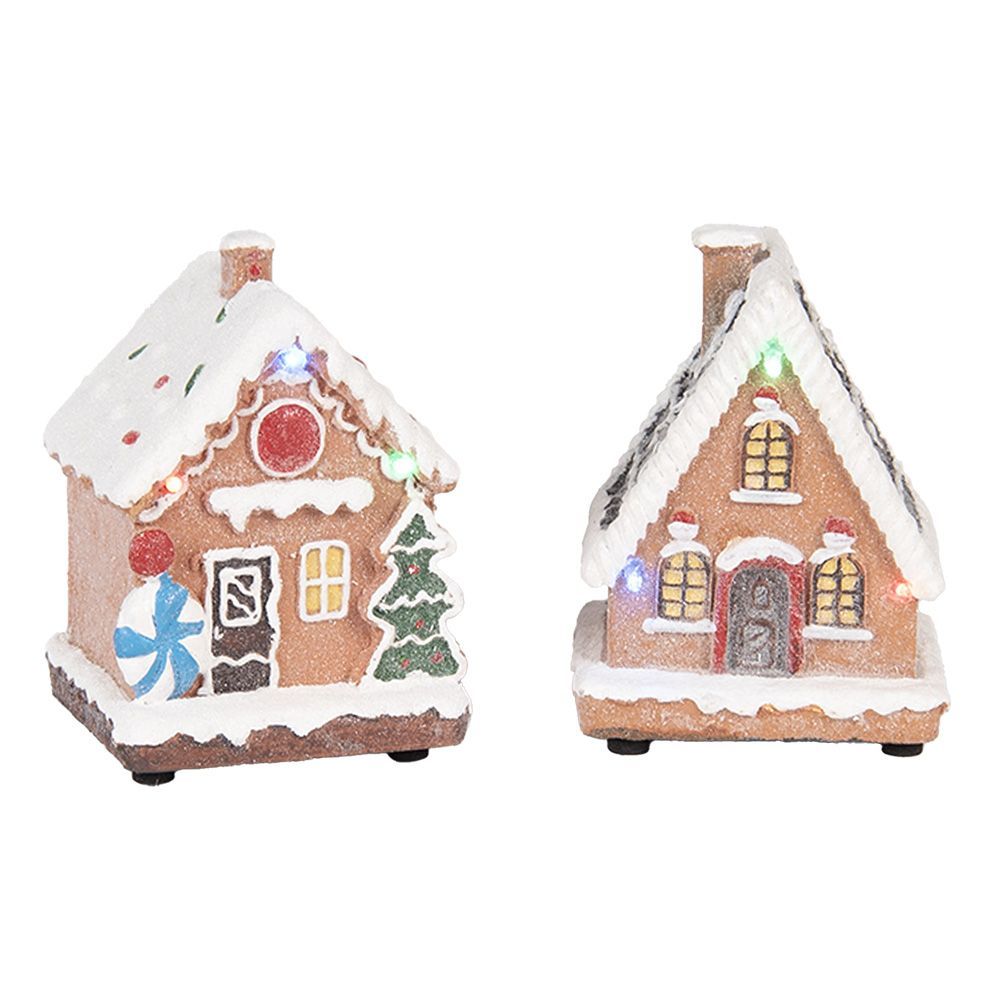 Clayre & Eef Clayre & Eef Weihnachtsdekoration mit LED-Beleuchtung Lebkuchenhaus (set 17) 9x8x13