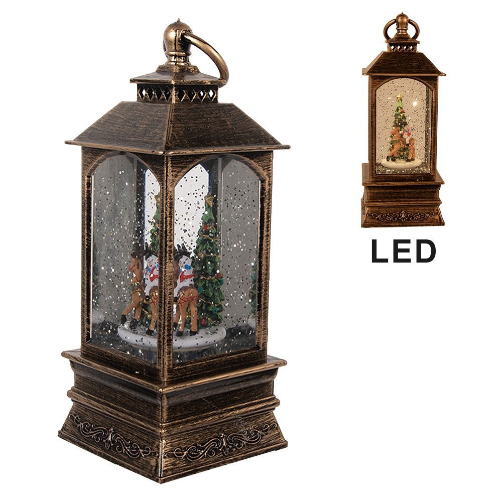 Clayre & Eef Clayre & Eef Weihnachtsdekoration mit LED-Beleuchtung und Musik 8x8x20 cm Braun