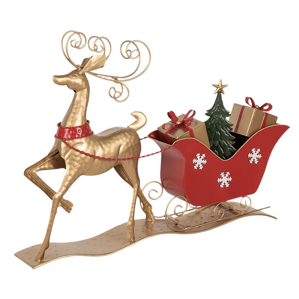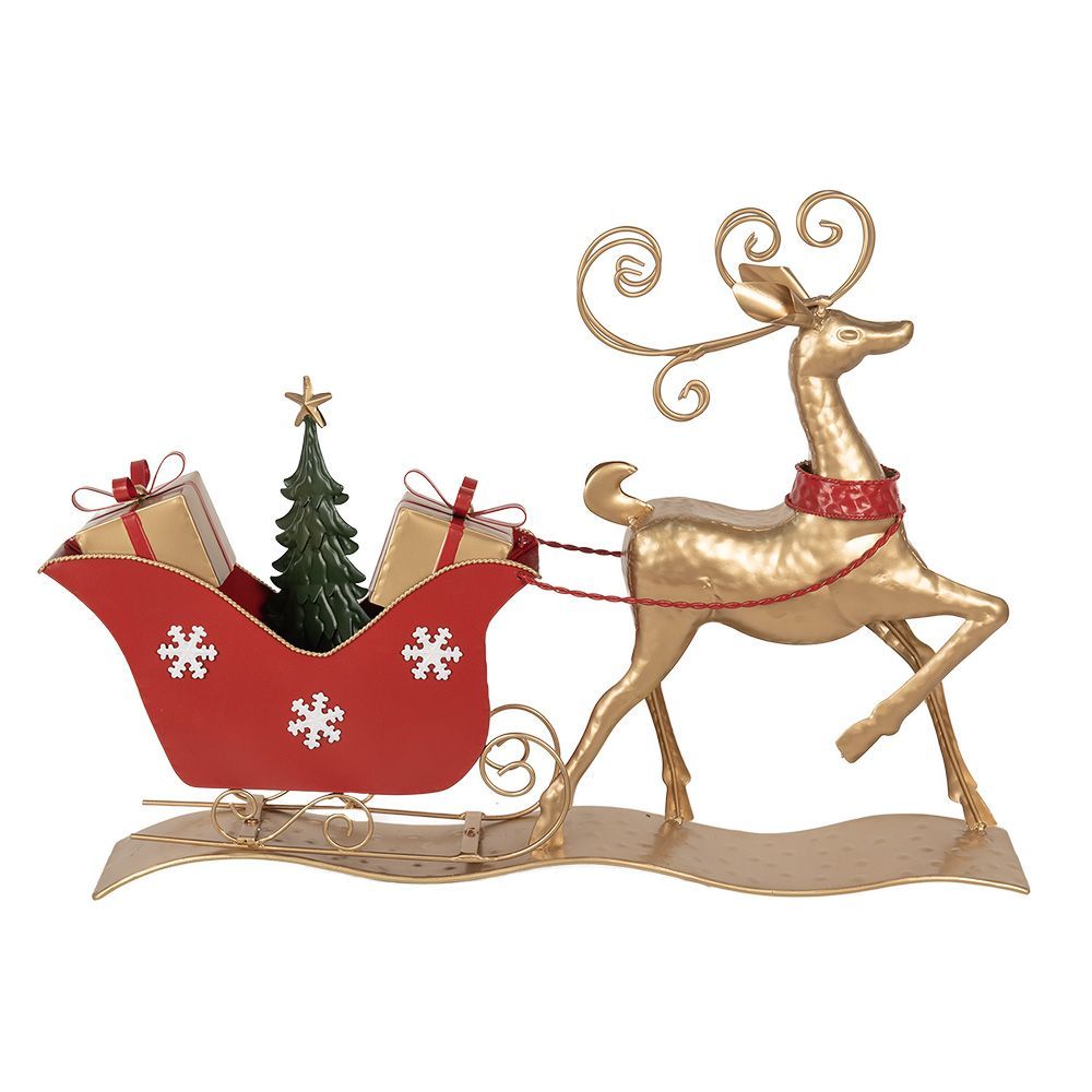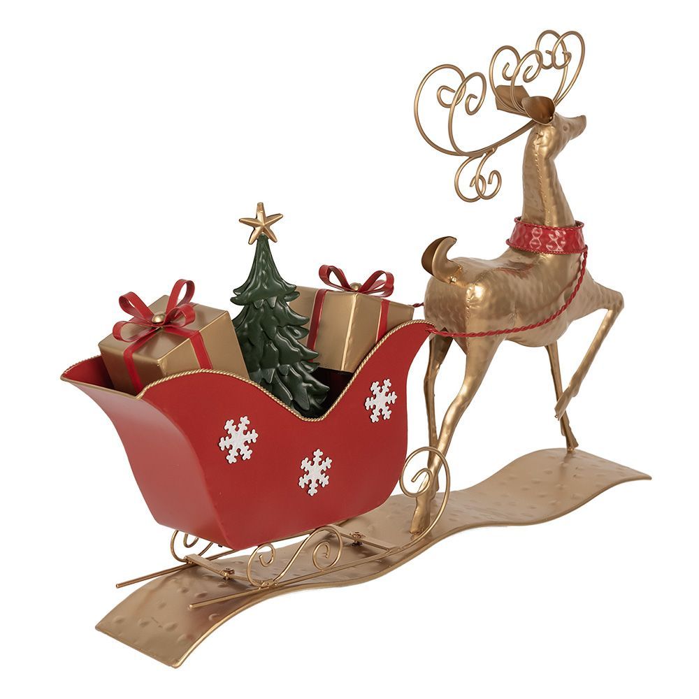 Clayre & Eef Clayre & Eef Weihnachtsdekoration Schlitten 70x12x49 cm Braun Rot Metall