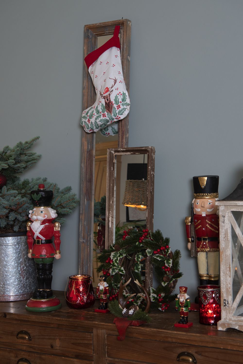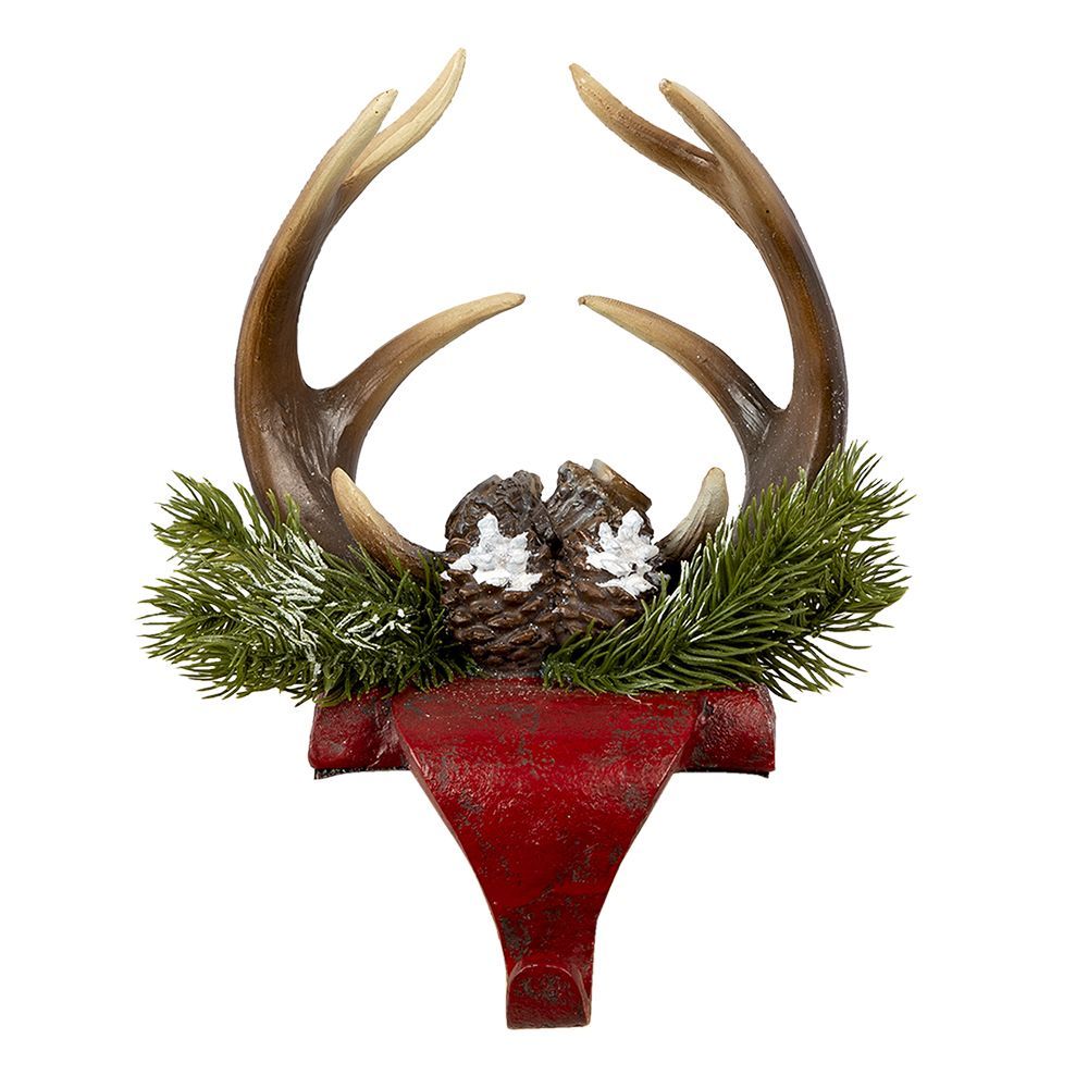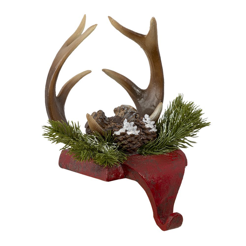 Clayre & Eef Clayre & Eef Weihnachtssocke häkeln Geweih 18x24x15 cm Rot Braun Polyresin