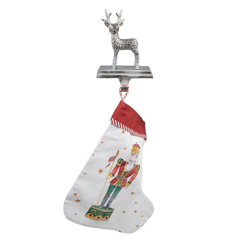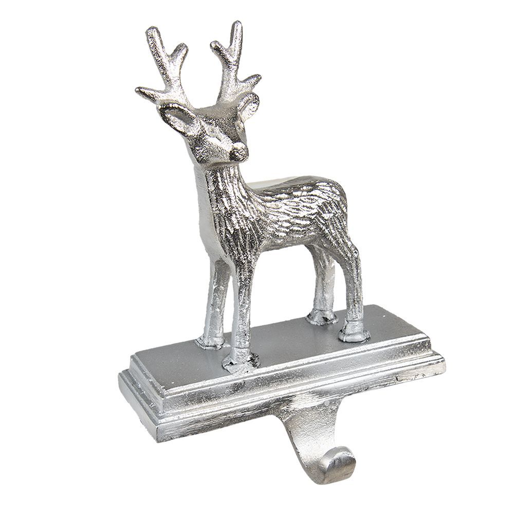 Clayre & Eef Clayre & Eef Weihnachtssocke häkeln Rentier 21 cm Silberfarbig Aluminium