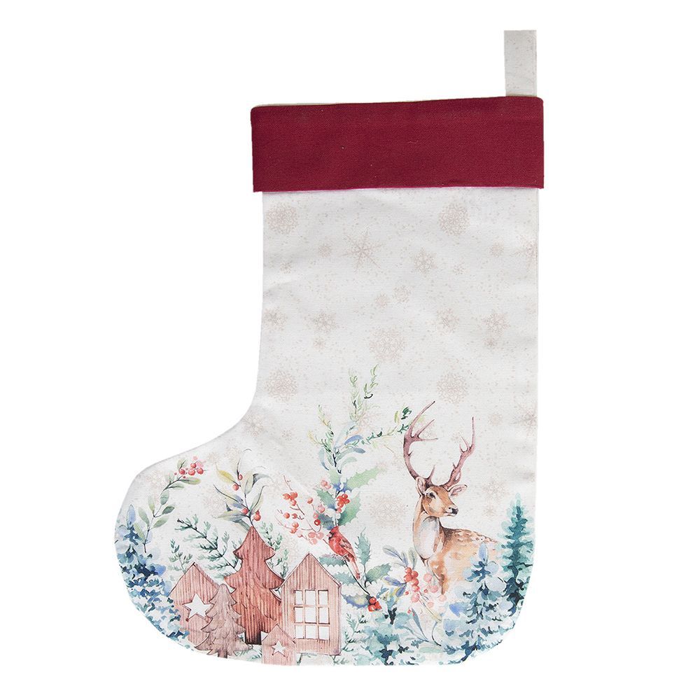 Clayre & Eef Clayre & Eef Weihnachtsstrumpf 30x40 cm Weiß Rot Baumwolle