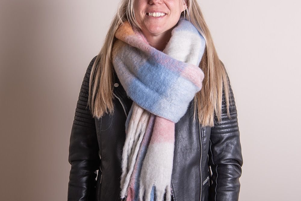 Clayre & Eef Winterschal Damen 36x210 cm Rosa Blau Acryl Rauten