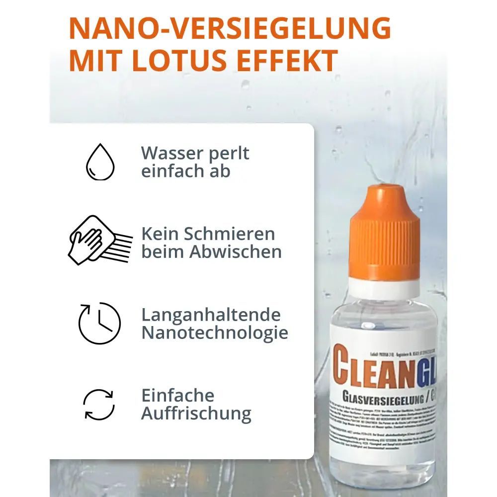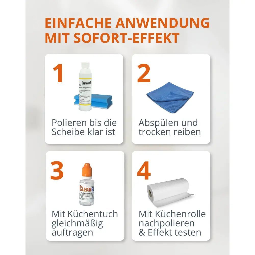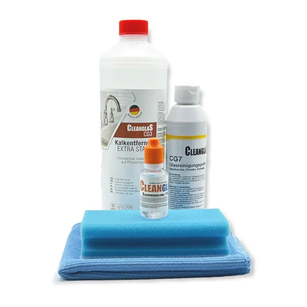 CleanglaS Glasversiegelung - Komplett Set für 24 m² - mit Glaspolierer Entkalker Tuch