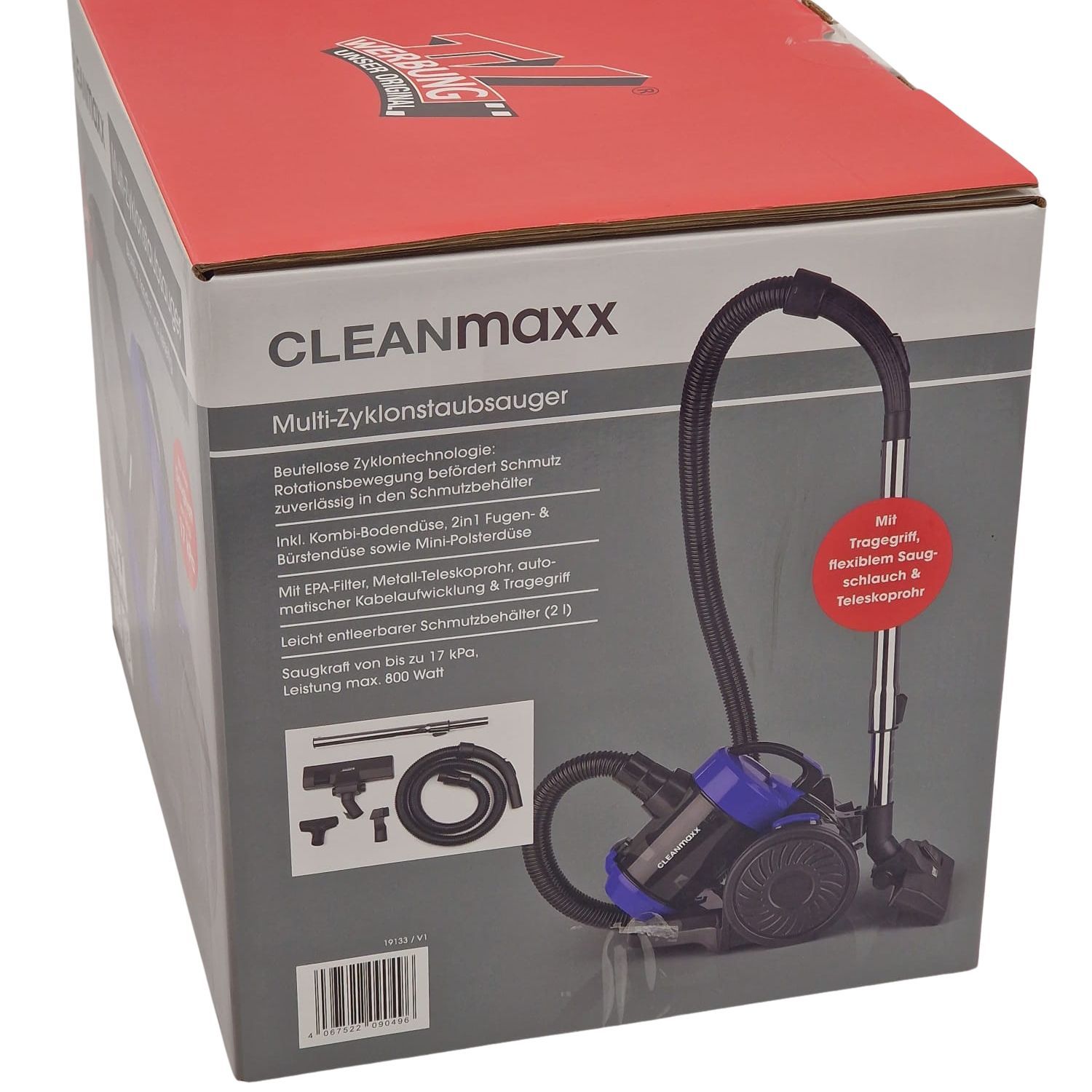 CLEANmaxx Multi-Zyklonstaubsauger 800 W | Beutellos | EPA-Filter | 17 kPa BLAU