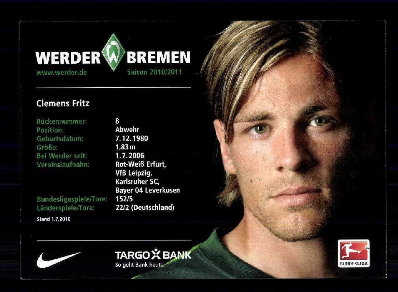 Clemens Fritz Autogrammkarte Werder Bremen 2010-11 Original Signiert