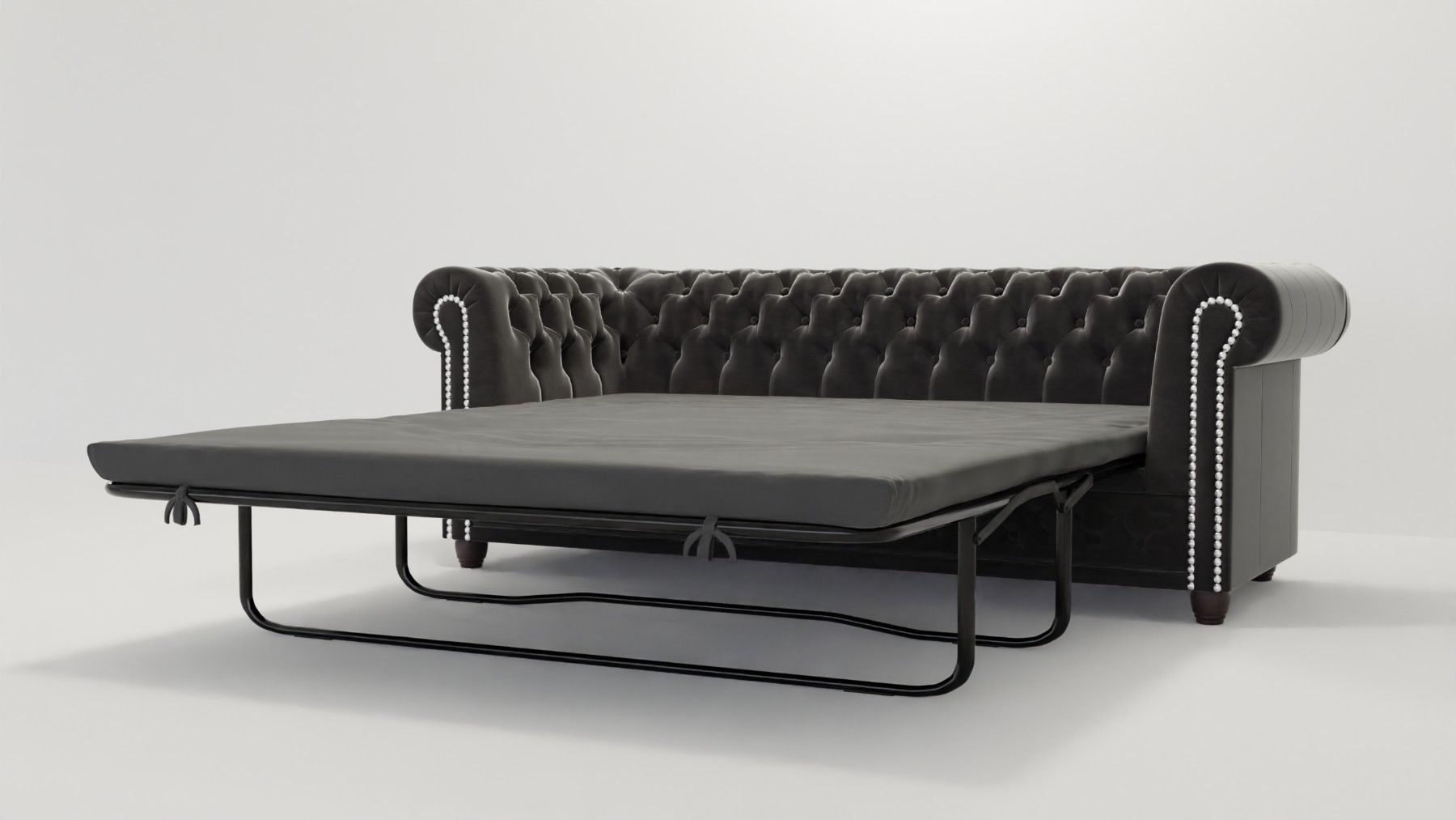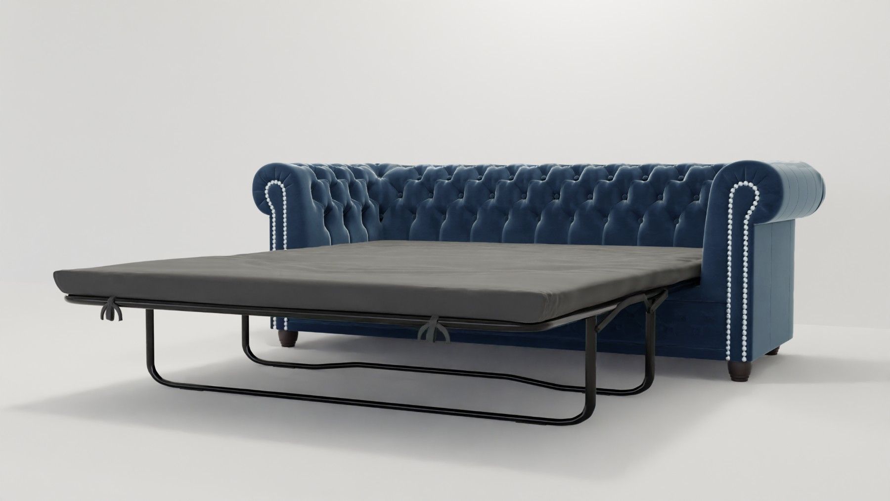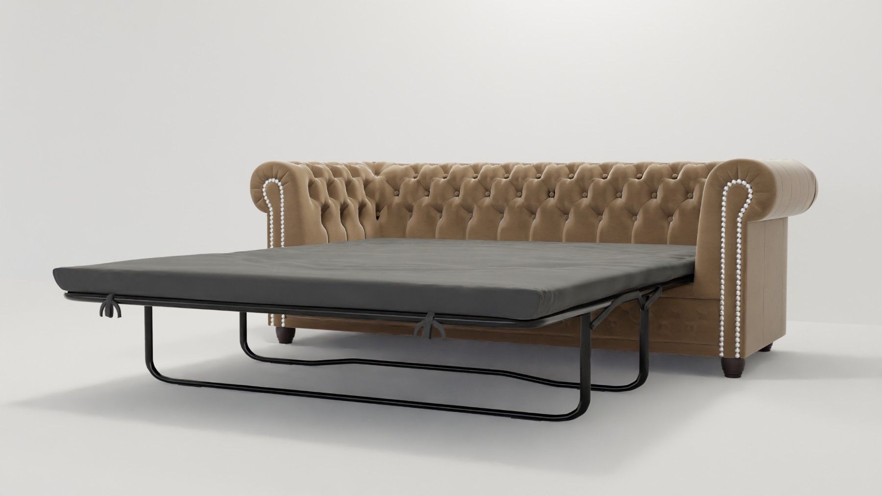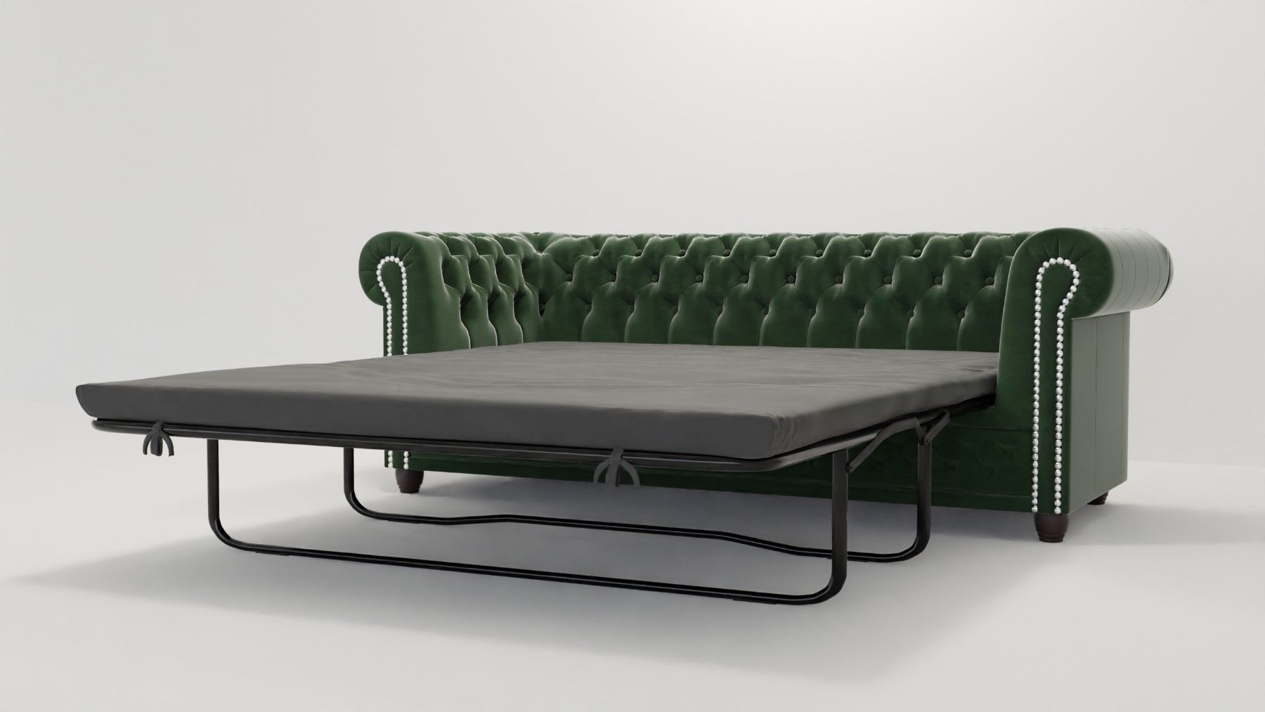 Cleo - Chesterfield 3 sitzer Sofa mit Schlaffunktion aus Samt-Stoff mit Holzfüßen