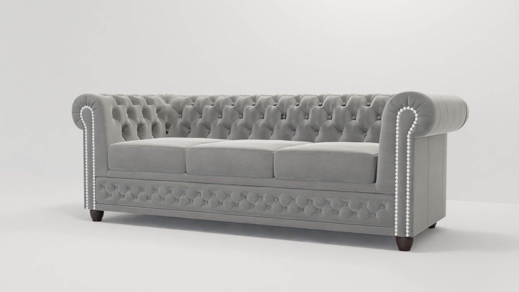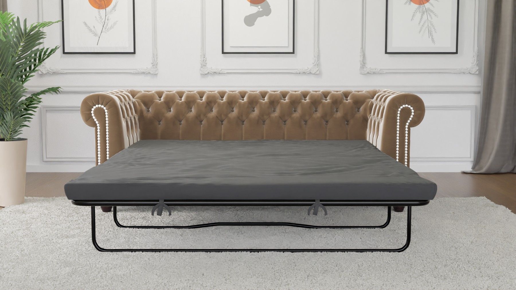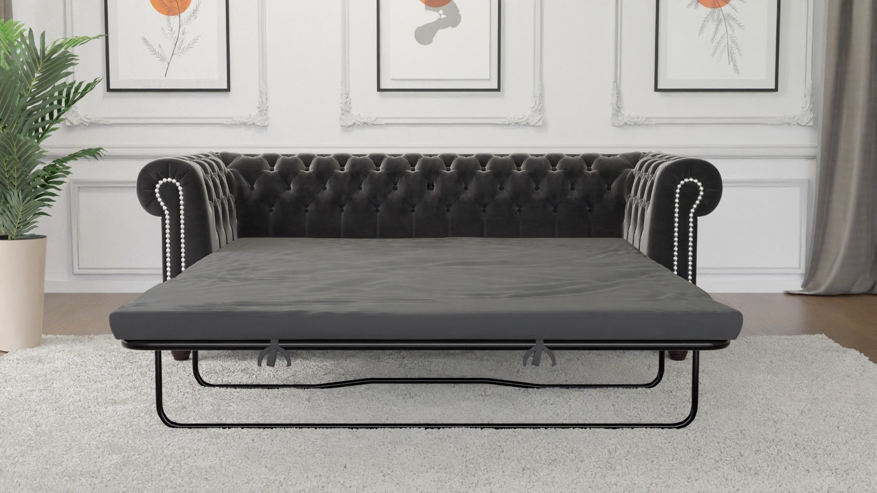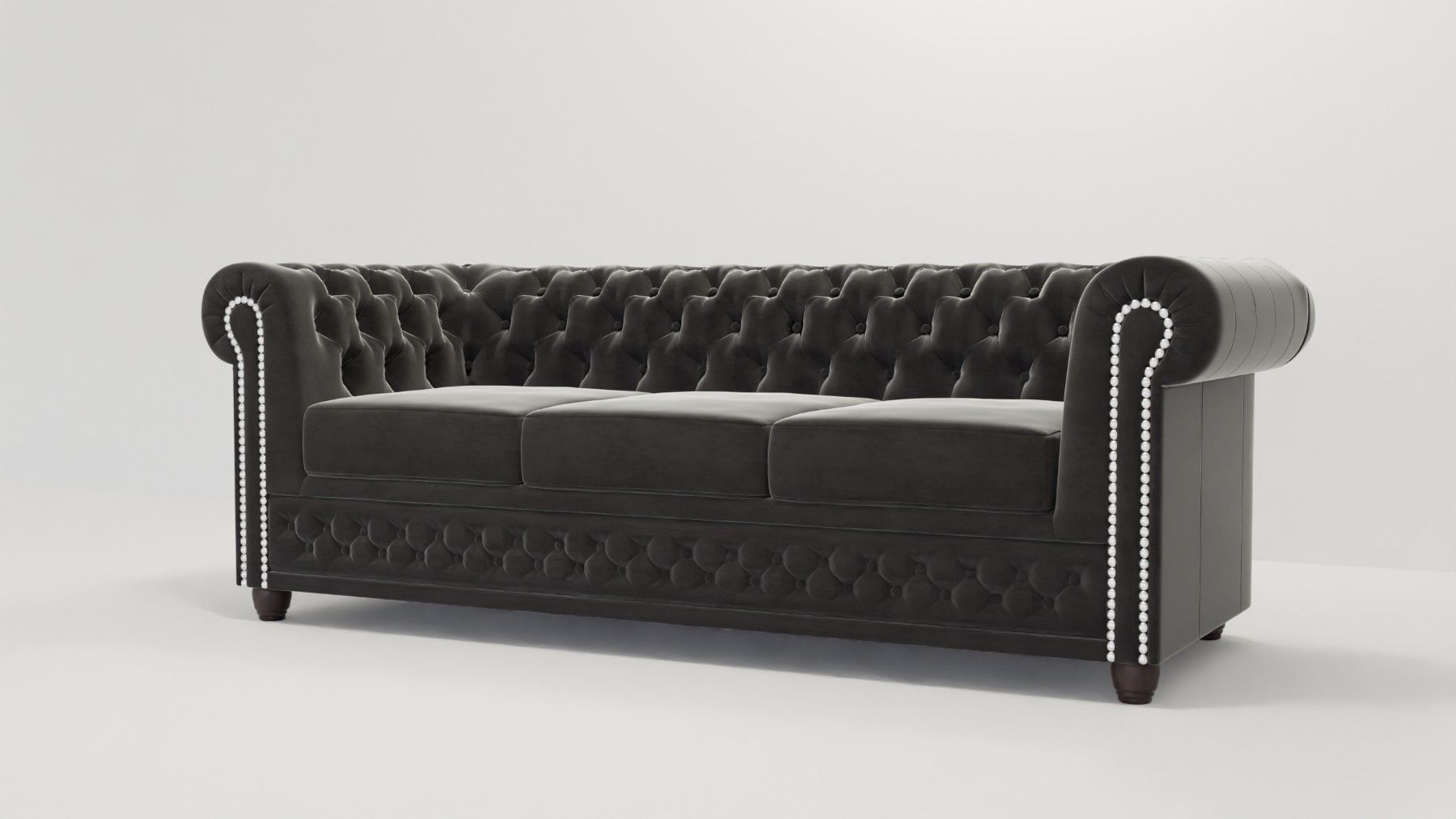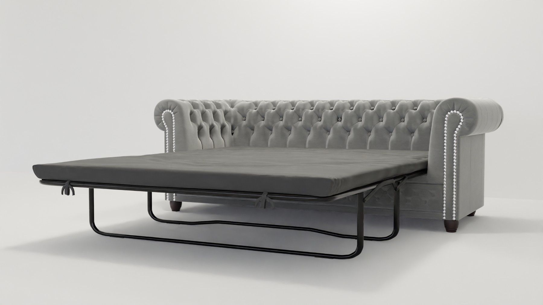Cleo - Chesterfield 3 sitzer Sofa mit Schlaffunktion aus Samt-Stoff mit Holzfüßen