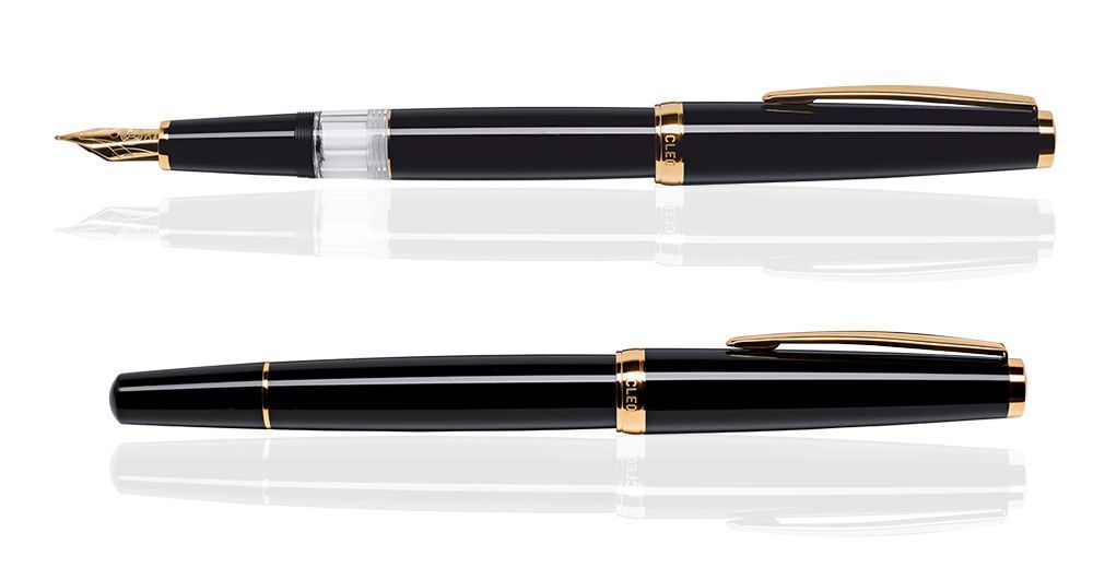 CLEO Classic Gold Kolbenfüllhalter Schwarz, 14 K Feder