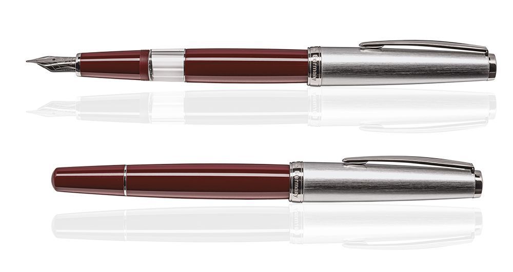 CLEO Classic Metall Kolbenfüllhalter Bordeaux, Edelharz