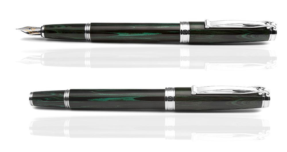 CLEO Ebonite Füllfederhalter Green, 18 K Feder Bicolor