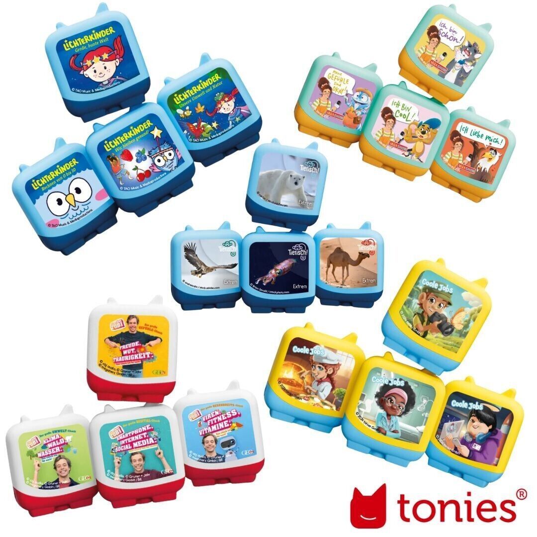 In diesem Angebot finden Sie Clever Tonies 4er Sets für die Tonie-Box Das gesamte Sortiment an Tonie-Produkten ALLE TONIES KREATIV-TONIES ENGLISCHE TONIES MÄRCHEN-TONIES KINDERLIEDER-TONIES TONIE-BOXEN ZUBEHÖR finden Sie in unserem Shop ( Das Sortiment ist so groß, dass leider nicht alle Figuren in