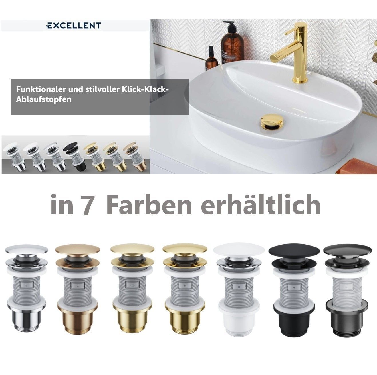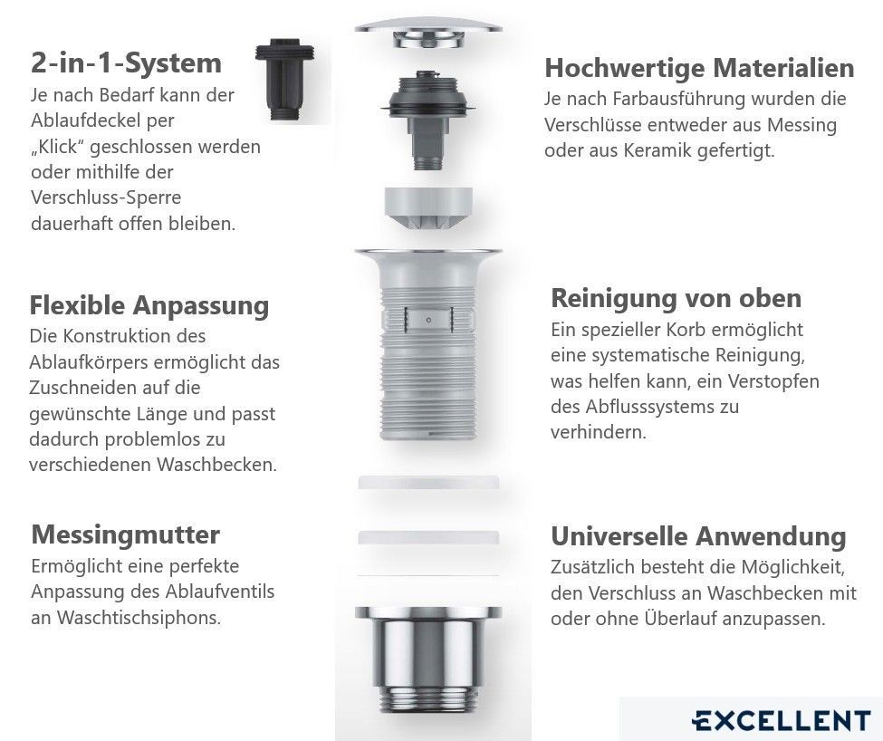 Click Clack schwarz matt Pop-Up Ablaufventil Keramik Waschbecken mit/ohne Überlauf