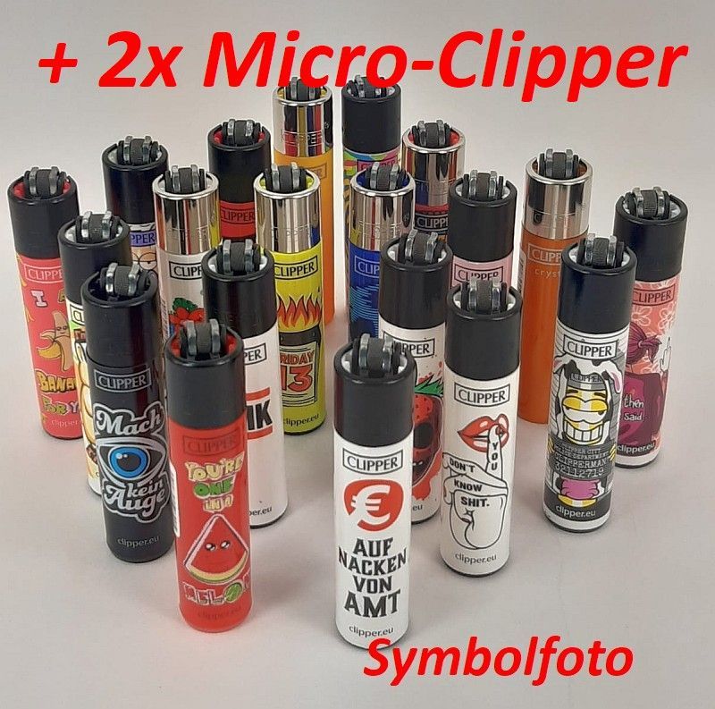 Clipper Feuerzeug Rund, 20er-Set, div. Motiv + 2 Micro-Clipper