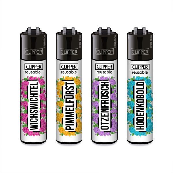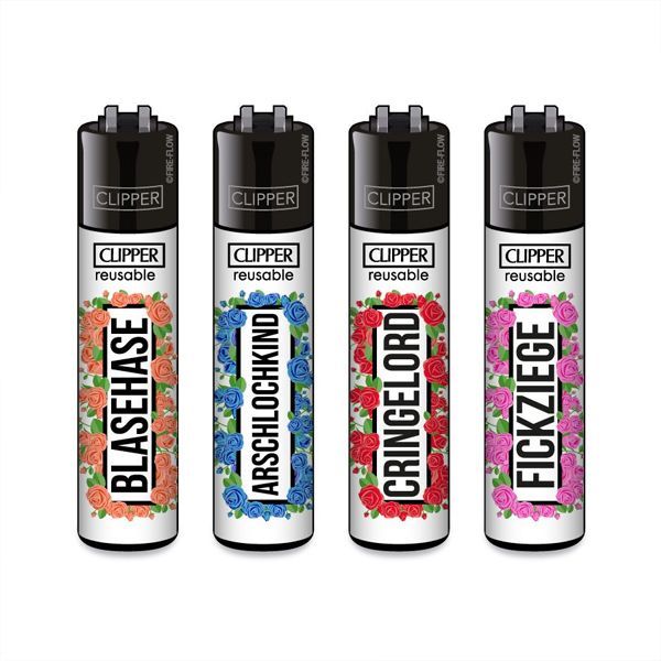 Clipper Reibrad Feuerzeuge Best of Schimpfwörter, 4 Stück