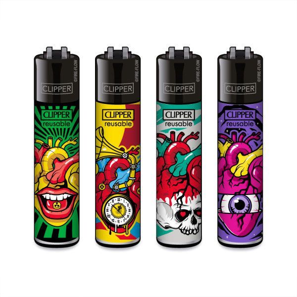 Clipper Reibrad Feuerzeuge Trippy Hearts #2, 4 Stück