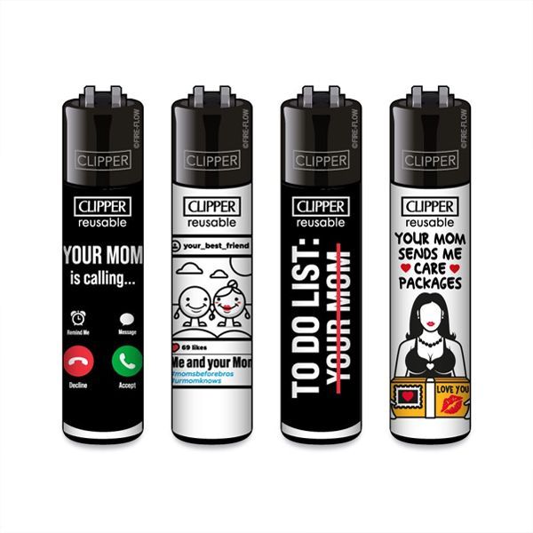Clipper Reibrad Feuerzeuge Your Mom, 4 Stück