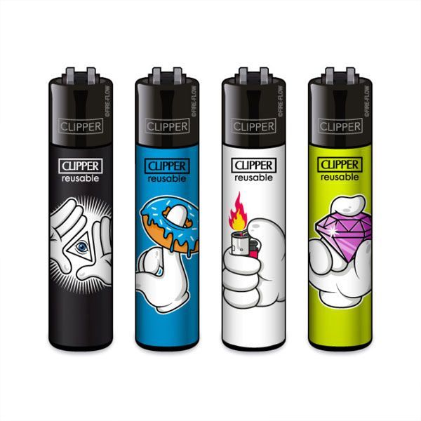 Clipper Reibradfeuerzeuge Cartoon HANDS #3, 4 Stück