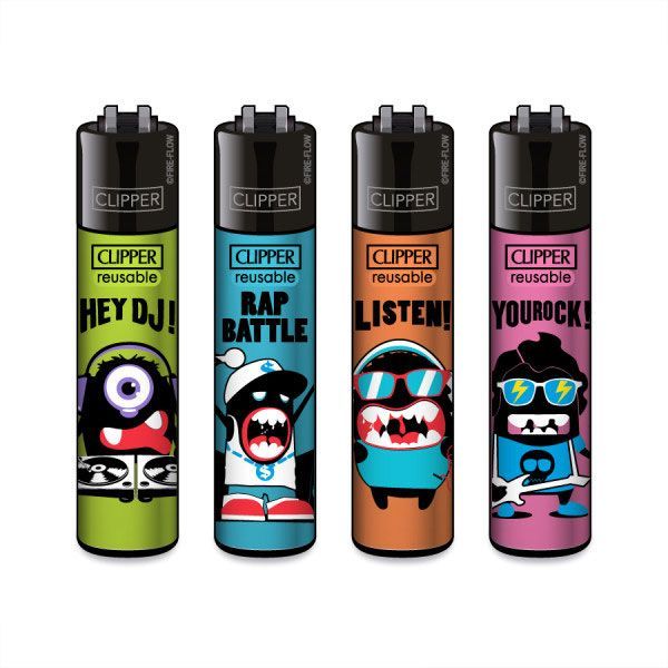 Clipper Reibradfeuerzeuge Music Monseterz, 4 Stück